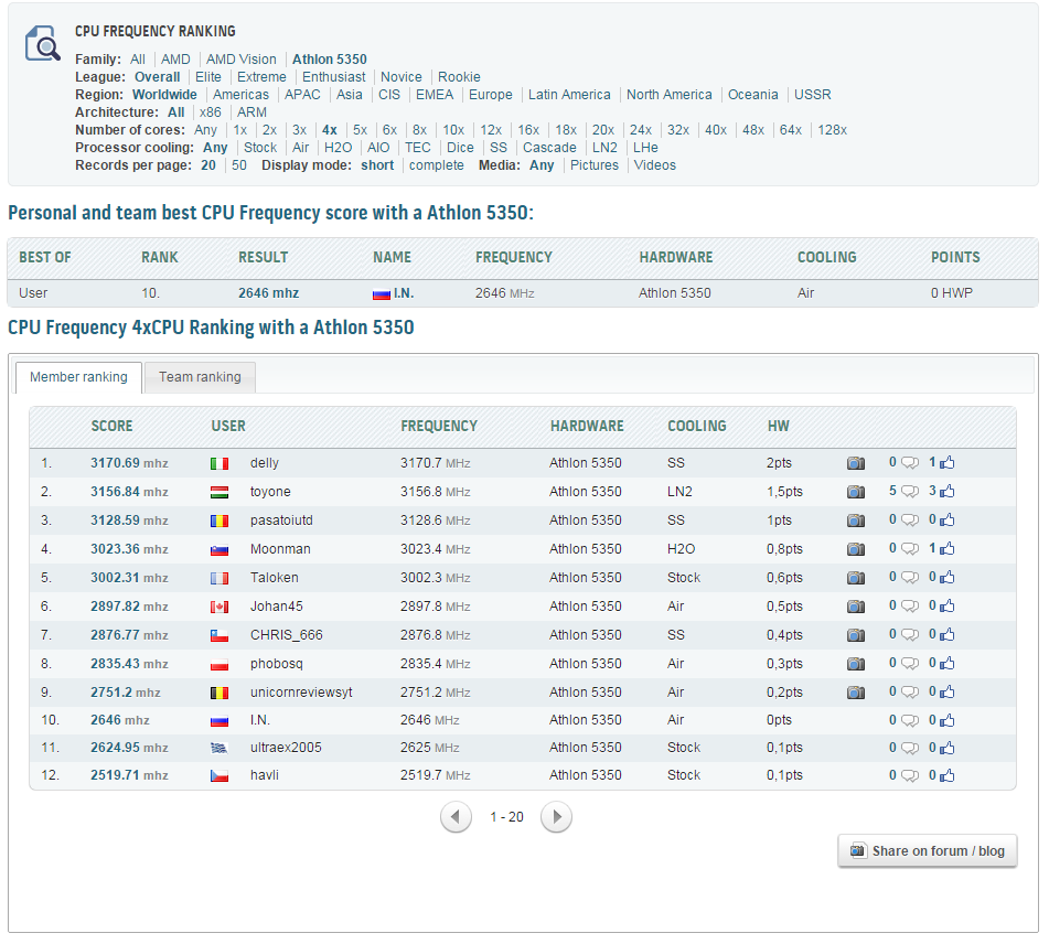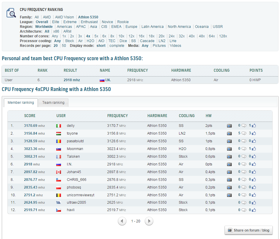 Хотя гордиться, собственно, нечем: общее число результатов разгона Athlon 5350 равно всего 12-ти.