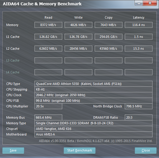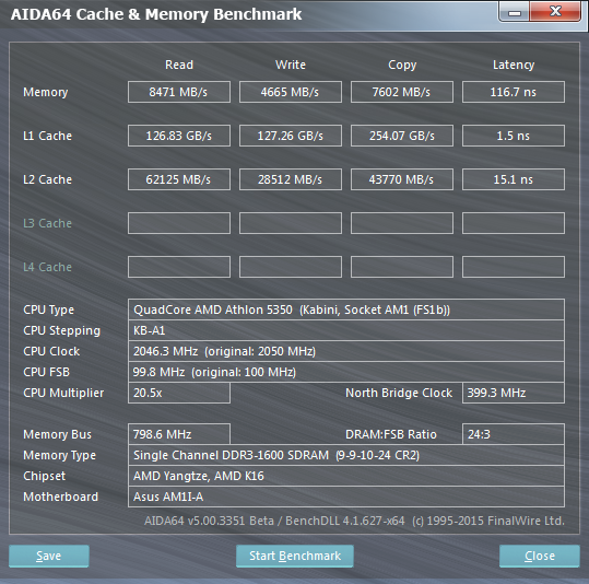 Отлично видно, что результаты на частотах 1333 и якобы 1600 МГц отличаются в пределах погрешности. На всякий случай подчеркну: множители частоты памяти не работают именно на этой плате, тогда как на AM1M-A мне удавалось проводить тесты на частотах вплоть до 2016 МГц. Таким образом, на AM1I-A фактическая частота памяти составляет примерно 1451 МГц.