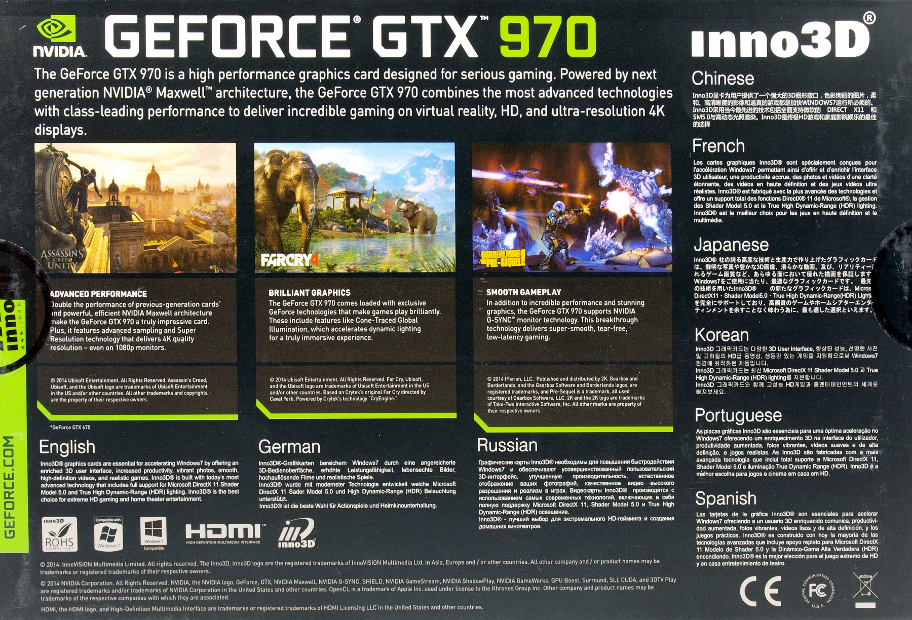 По классическому сценарию центральная часть отдана изображениям современных видеоигр и описаниям достигнутых высот в плане уровня производительности, качества графики и игрового процесса. Конечно же, при использовании GeForce GTX 970.