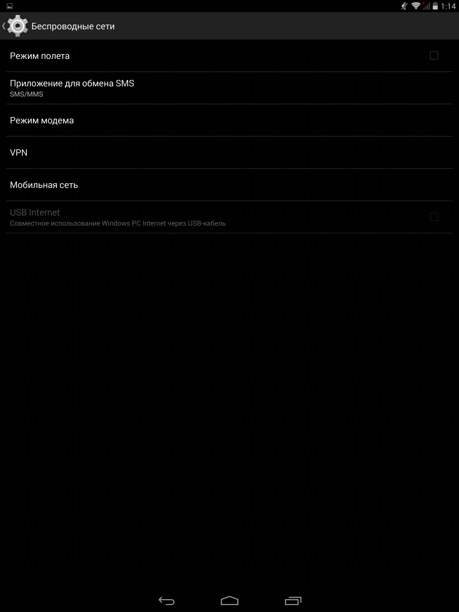 Настройки сети довольно просты. Планшет можно использовать в качестве модема с помощью Bluetooth, USB или точки доступа с помощью Wi-Fi.