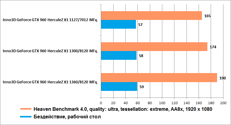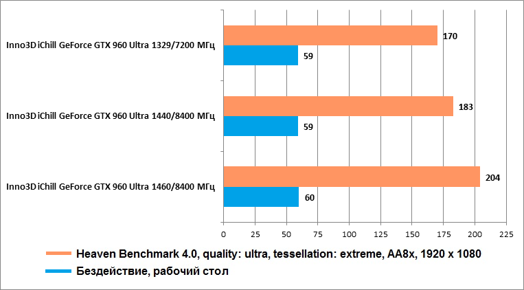 Аналогичные показатели снимались с видеокарты Inno3D GeForce iChill GTX 960 Ultra. Соответствующий график представлен ниже.