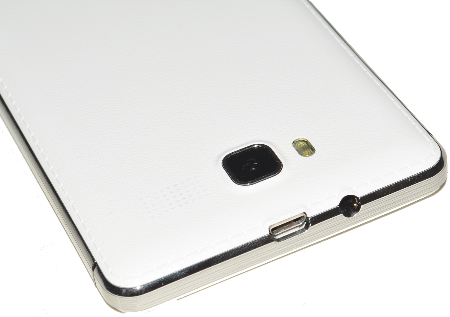 Материалом корпуса послужил пластик. А вот покрытие задней крышки позаимствовано у моделей всем известной компании Samsung. Она просто-напросто обшита искусственной кожей. Из-за этого можно не переживать, что после непродолжительной эксплуатации устройство покроется мелкими царапинами, если пользоваться смартфоном без чехла.