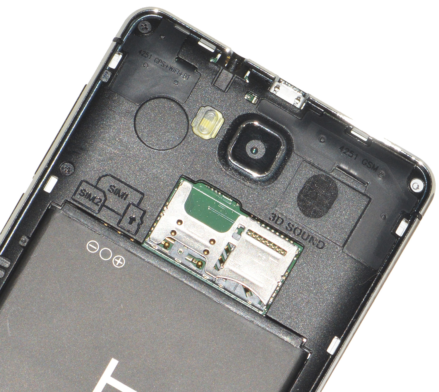 Над ним расположены слоты для SIM-карт и карты памяти формата microSD.