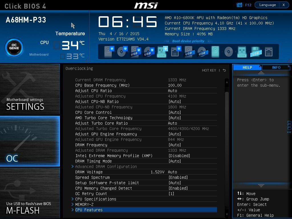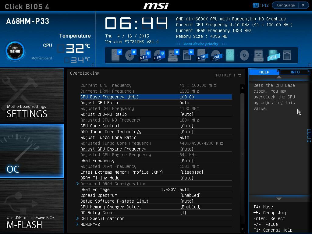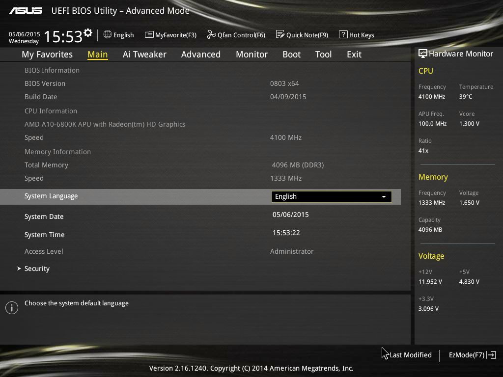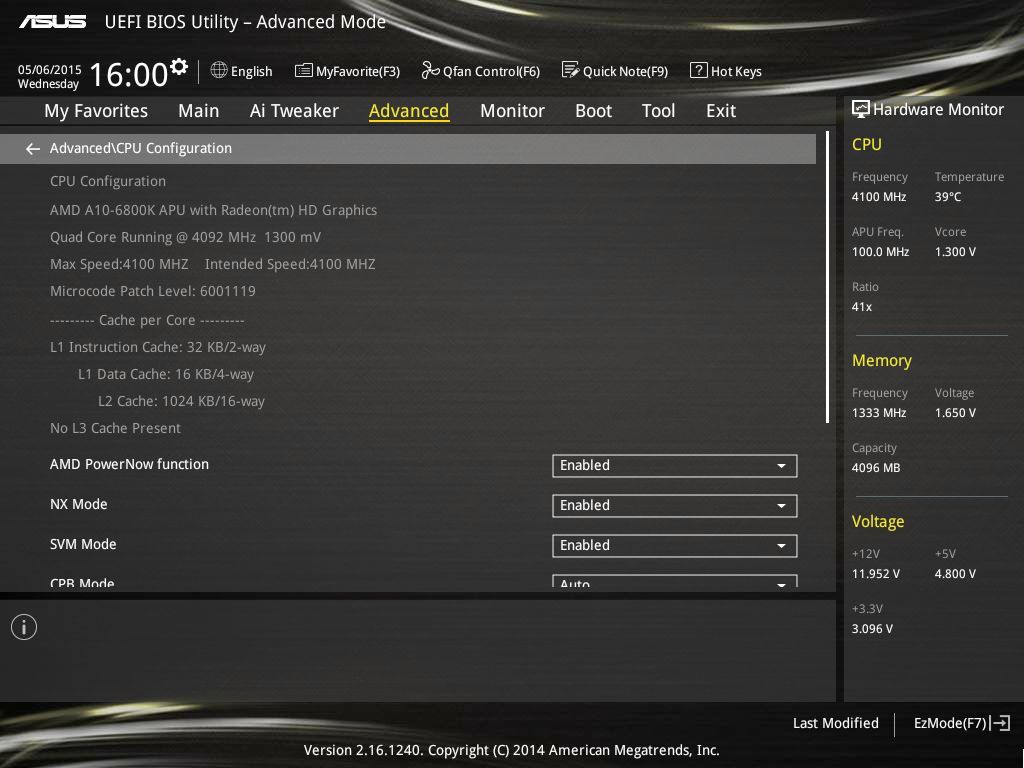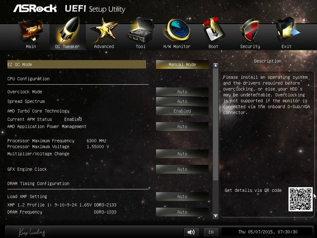 Однако попытки повысить частоту памяти свыше 1866 МГц заканчивались сбоями операционной системы. Разгонять графическое ядро при отсутствии должного разгона оперативной памяти нет смысла. А разгон используемого экземпляра процессора при отсутствии доступа к его напряжению практически бессмыслен (из среды Windows напряжение можно изменять посредством AMD Overdrive, но только в сторону понижения). Ну а проверить разгон по базовой частоте («шине») невозможно из-за того, что выбор в BIOS ограничен значением в 105 МГц.