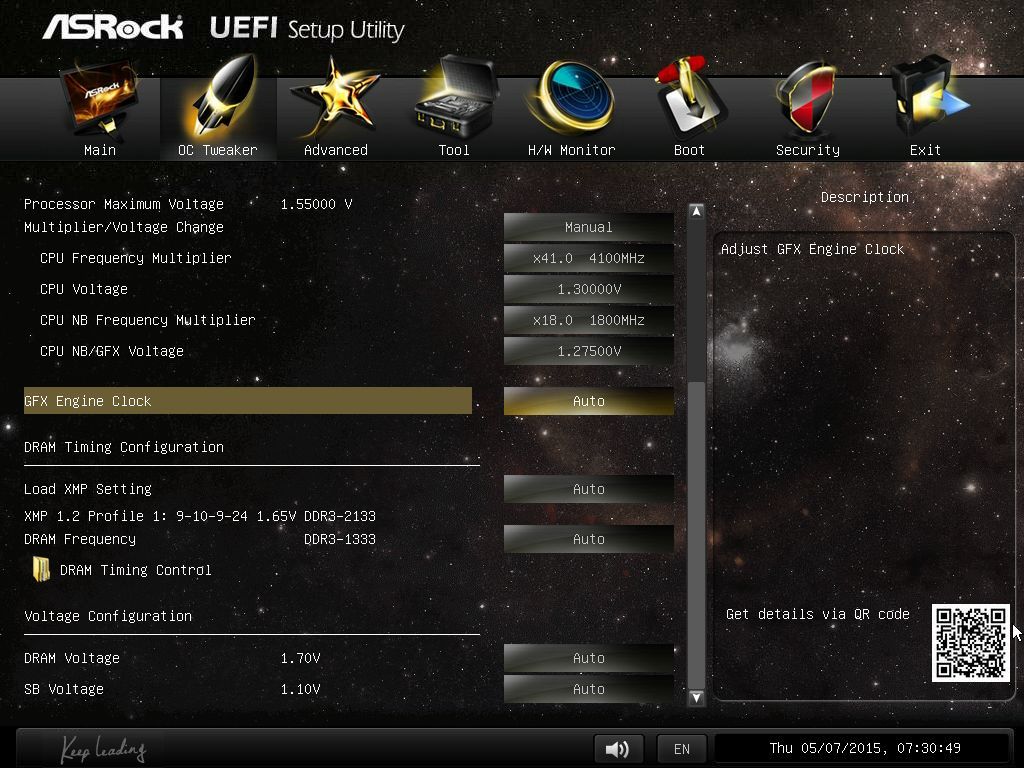 | Напряжение графического ядра | Auto, Adaptive, Overdrive, от 0.800 до 2.000 В с шагом 0.001 В | Параметр отсутствует | Параметр отсутствует |