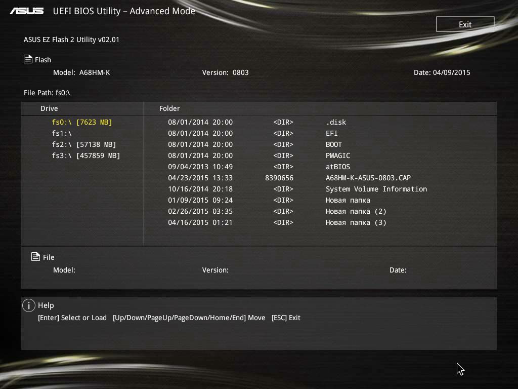 | Файловые системы, поддерживаемые BIOS для сохранения скриншотов и профилей настроек | FAT16/32: чтение/запись NTFS: только чтение |