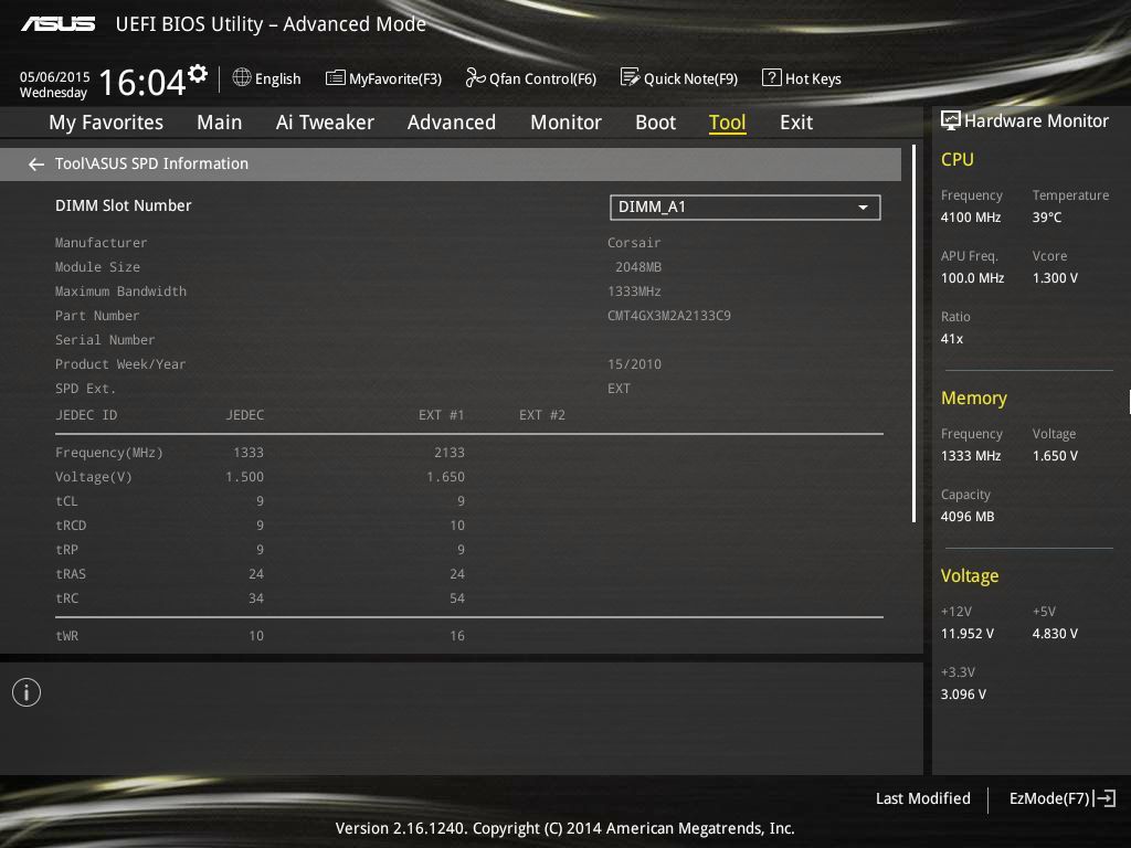 Для оперативной памяти за штатный режим работы выбрана эффективная частота 1333 МГц (DDR3-1333) с таймингами 9-9-9-24-110-1T.