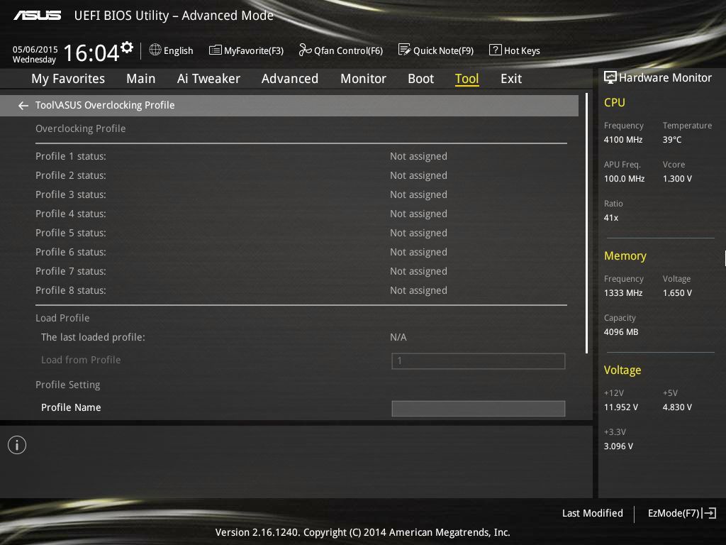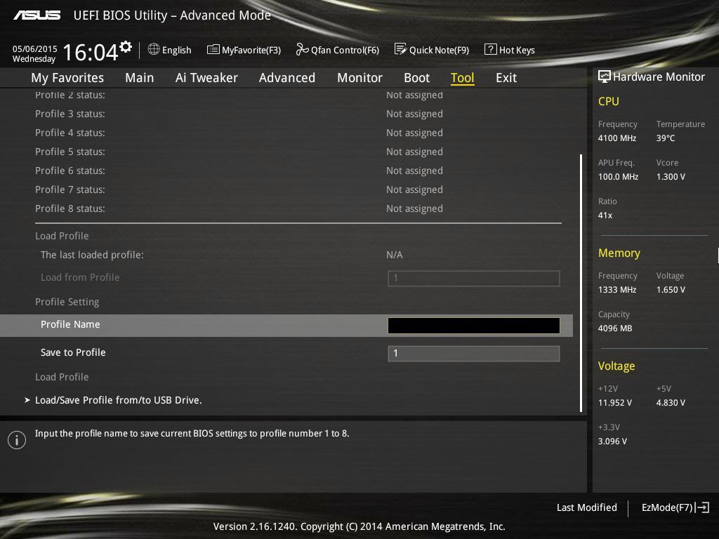 | Функционал BIOS | Профили настроек (три в памяти BIOS; возможность сохранения и загрузки с внешнего накопителя отсутствует) | Профили настроек (восемь в памяти BIOS + возможность сохранения и загрузки с внешнего накопителя) | Профили настроек (шесть в памяти BIOS + возможность сохранения и загрузки с внешнего накопителя) |