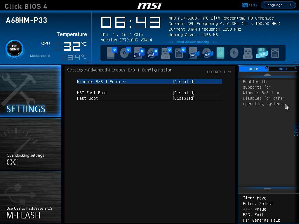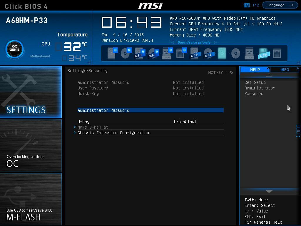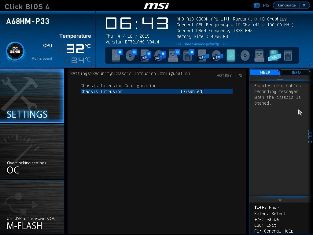 «Заводская» версия BIOS оказалась 17.0 – это самая первая официальная версия. Было произведено обновление до версии 34.4 (самой новой на момент тестирования).