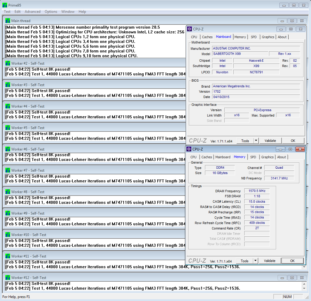 В качестве теста на стабильность использовалось десятиминутное прохождение Prime95 28.5 в режиме Blend.