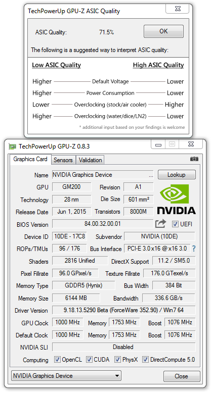 Естественно, качество кристалла графического процессора GM200 ниже у GeForce GTX 980 Ti, иначе откуда берутся урезанные версии? Хотя бывает и так, что рыночная ситуация вынуждает производителей отбраковывать полностью рабочие микросхемы.