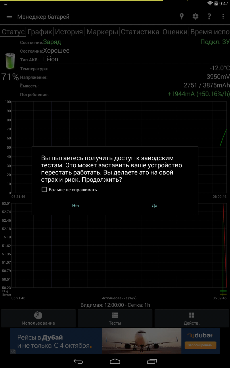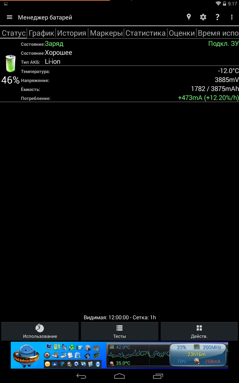 «Калибровка» аккумулятора опять-таки бесполезна без pro-версии, так как предусматривает ручную установку емкости батареи. Разве, что можно посмотреть историю циклов зарядки (но только при 50% минимального заряда).