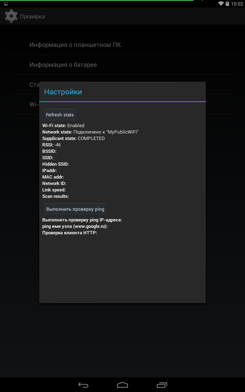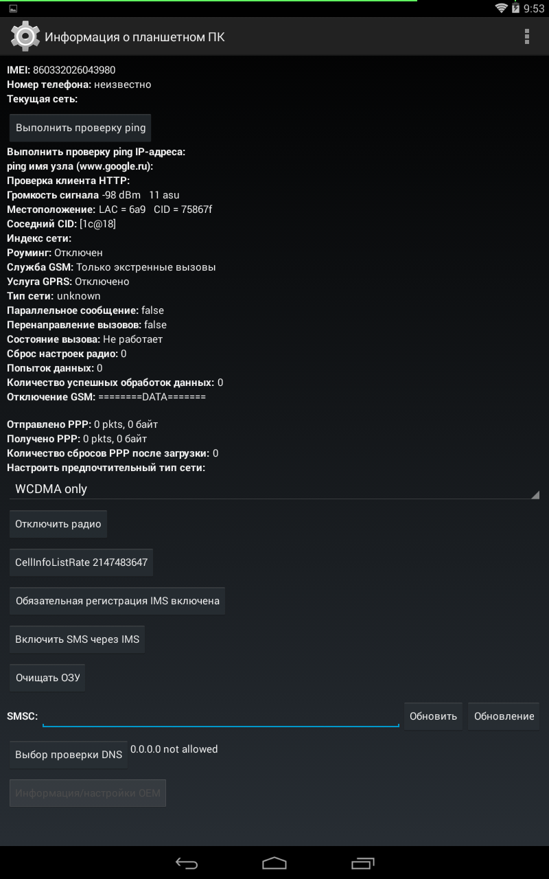 Раз уж мы попали в это хитрое меню, то пробежимся по другим его пунктам. Помимо инфы о батареи можно узнать подробную информацию о сети (здесь она называется информация о планшетном ПК).