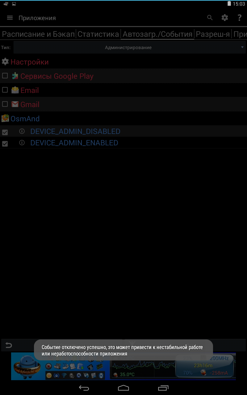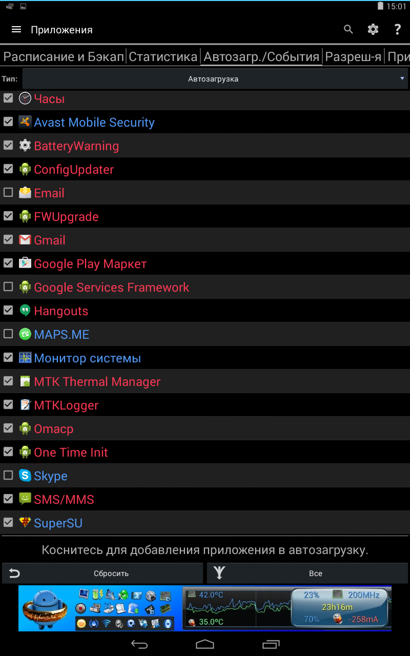 В общем, все это дело гибко настраивается, так что никакой Clean Master не нужен. Также можно назначить автозапуск конкретного приложения и время перезагрузки или выключения. Ниже обязательно активируем обновления обо всех операциях, так как по запарке можно будет подумать, что гаджет вдруг сошел с ума и начал глючить.