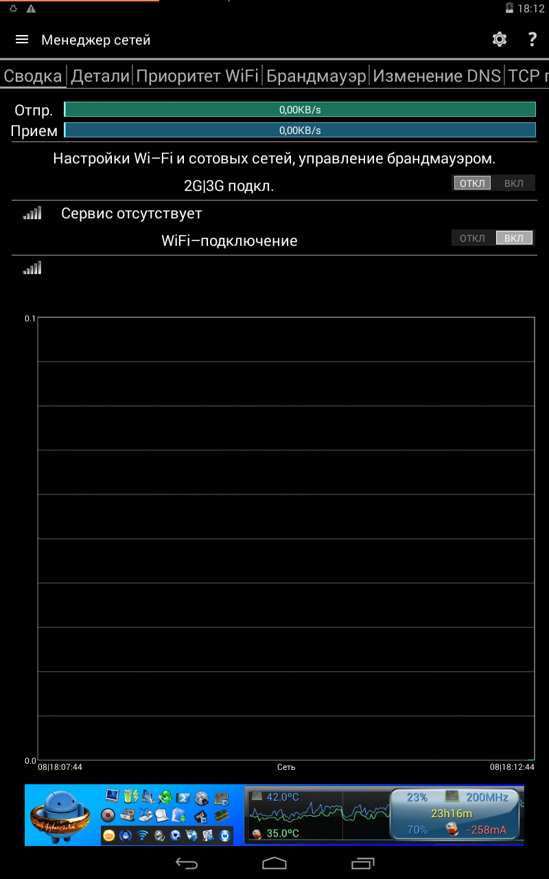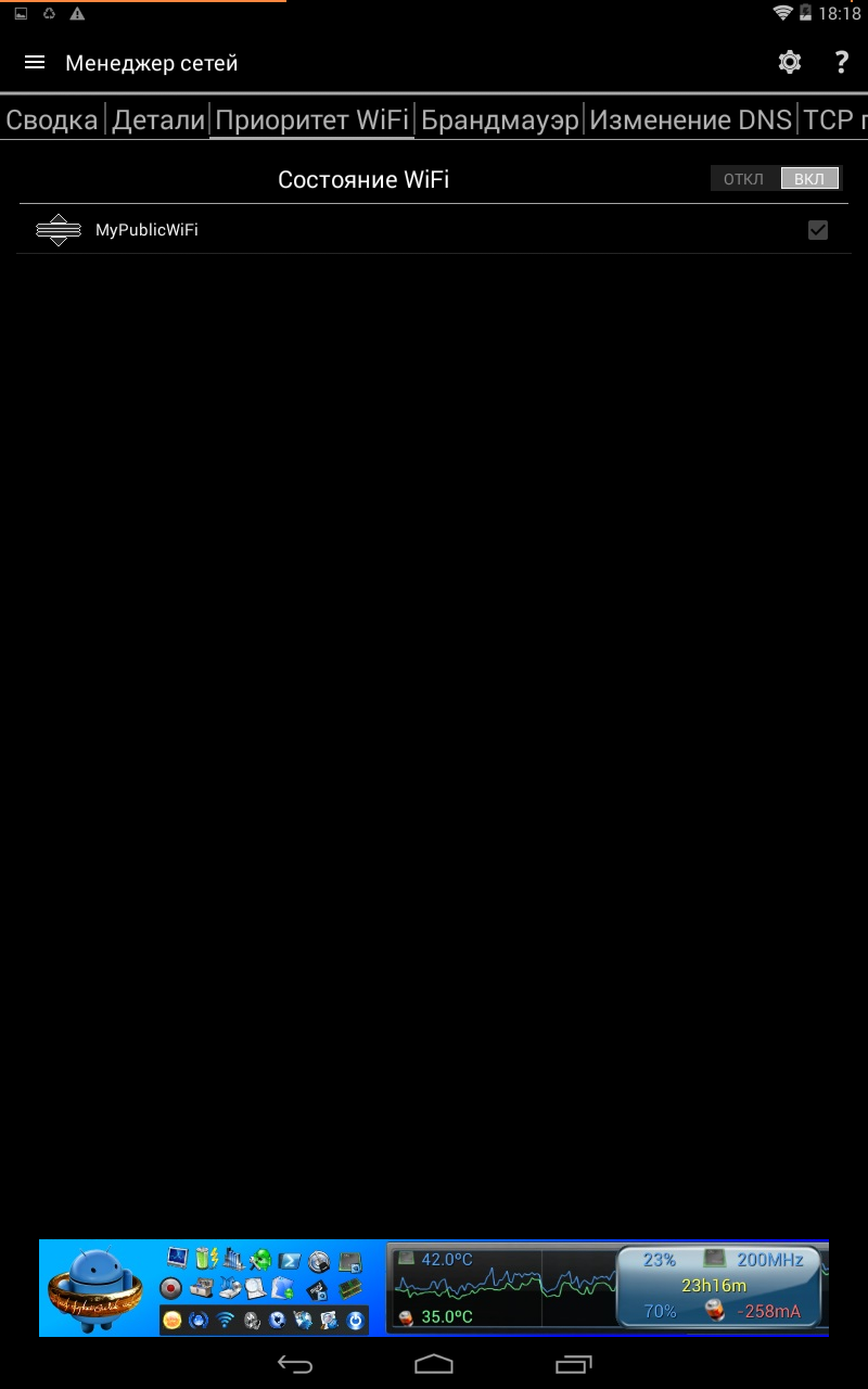 Менеджер АКБ и твики CPU мы рассмотрели выше, когда описывали быстрое управление процессором и аккумулятором, поэтому воду лить не будем, а обратимся сразу к менеджеру сетей.