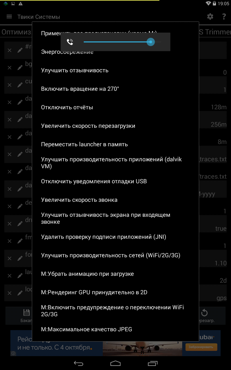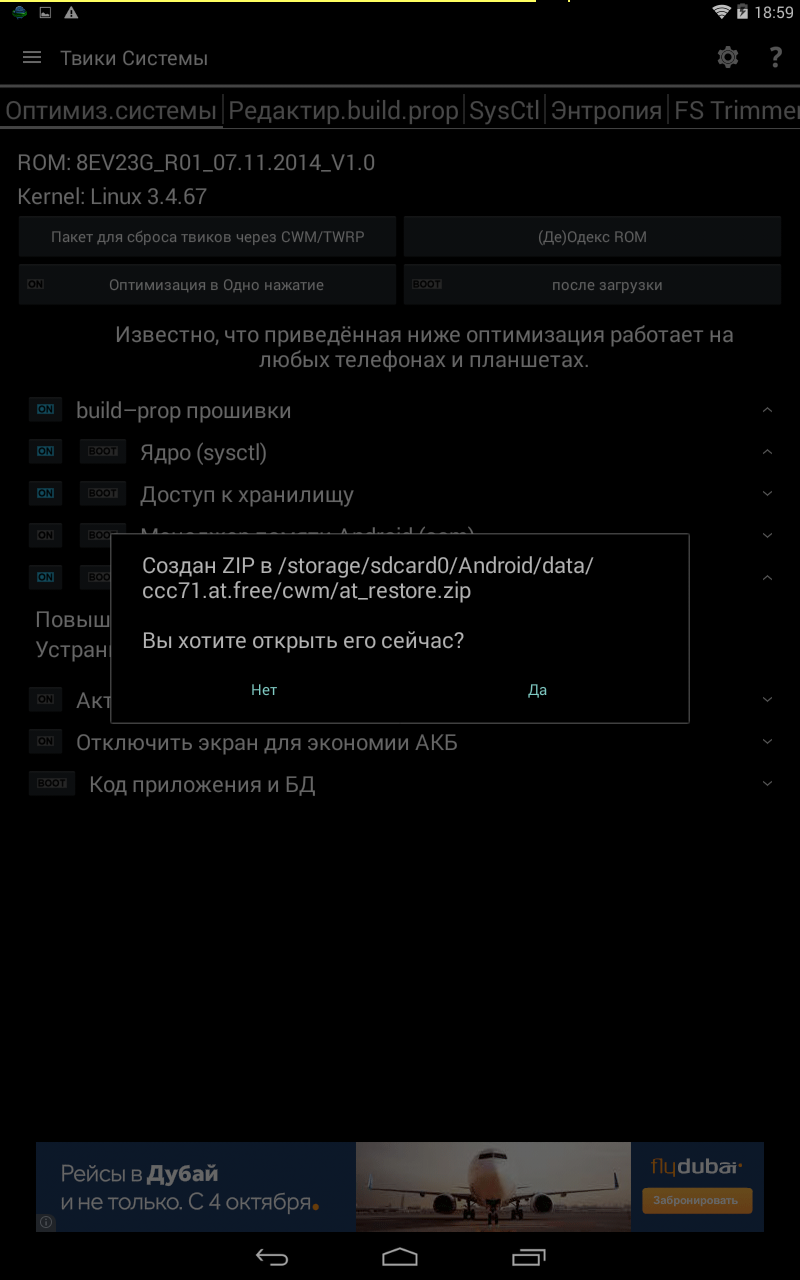 Ниже определяем, какие твики должны применяться при загрузке, что очень удобно и позволяет настроить собственную оптимизацию системы. Также можно создать CWM/TWRP-пакет для установки приложения после прошивки нового ROM, а также на всякий случай – пакет сброса всех твиков через CWM/TWRP.