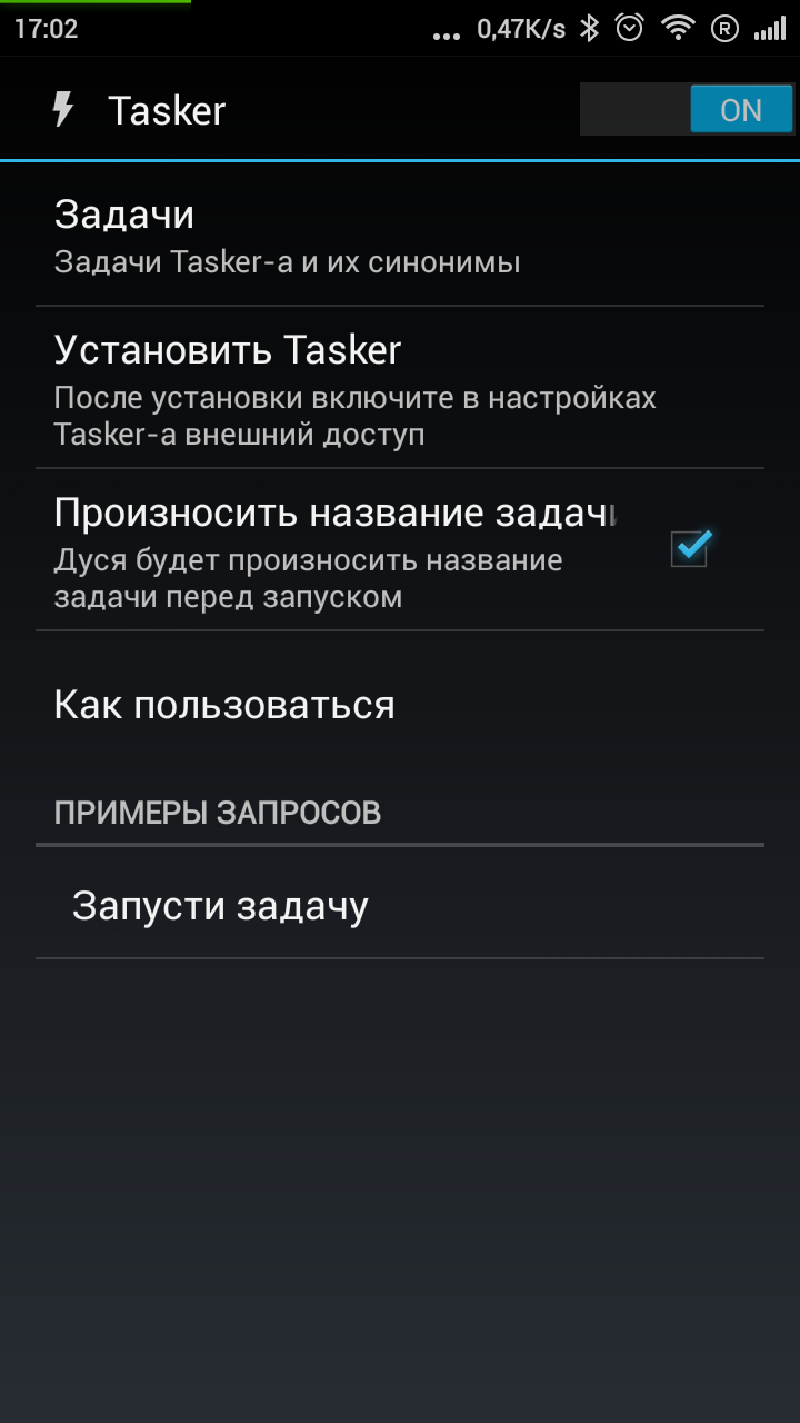 С задачами все примерно также. Они позволяют автоматизировать процессы на нашем мобильном устройстве. Придя домой можно сказать «я дома», после чего приложение автоматически включит Wi-Fi, выключит GPS и отрегулирует яркость экрана. Собственно, все действия настраиваются единожды и заранее. Создаются эти параметры очень и очень просто, да и подобные инструкции придут на помощь.
