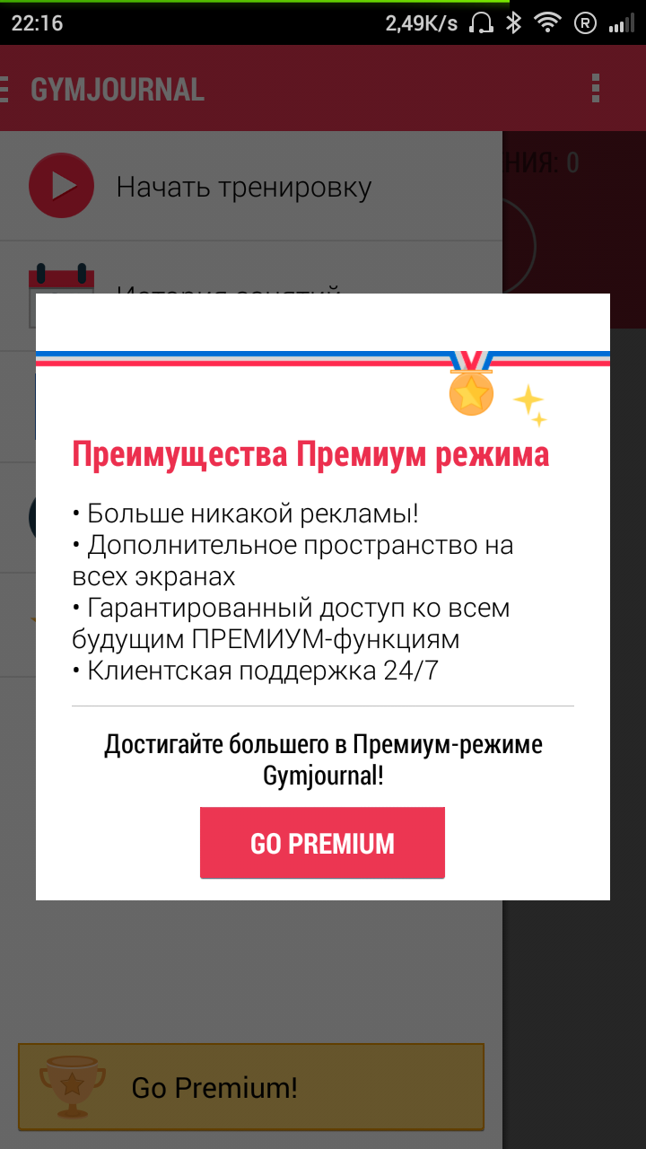 Преимущества Pro-версии программы Gymjournal: