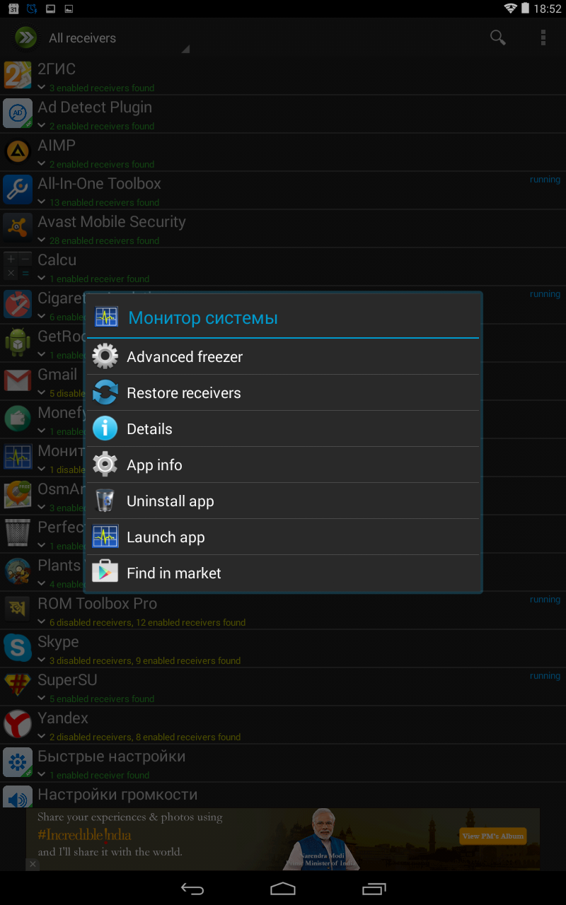 Есть и автоматический детектор рекламы в приложениях. Так, блокировщик успешно «убил» баннеры в Calcu, Plants vs Zombie и в мониторе системы, установленном на данный момент на устройстве.