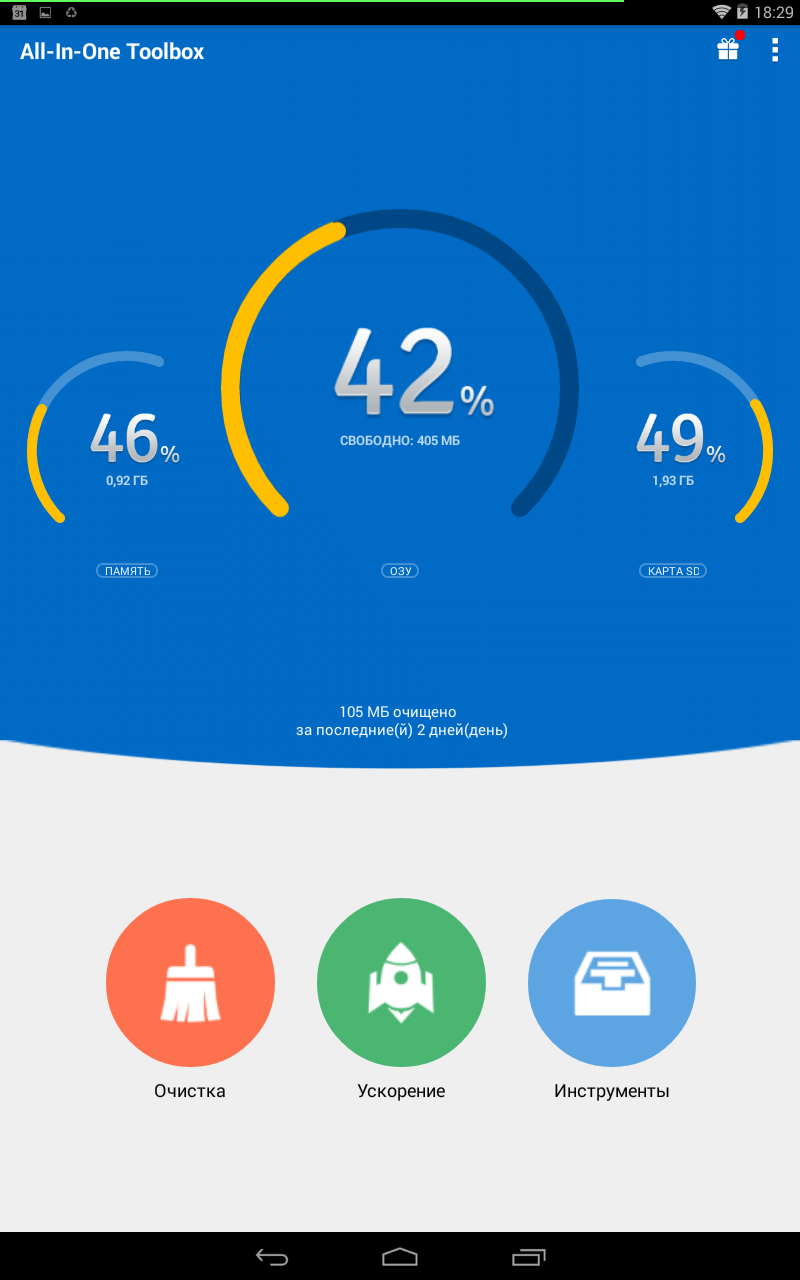 Представленные ниже приложения служат больше для успокоения души пользователя. Яркий тому пример All-In-One Toolbox, который, впрочем, может посоперничать с любым оптимизатором системы. Android Toolbox, наоборот, всего лишь облегчает работу с настройками Android, а RootToolbox может похвастать некоторыми возможностями, схожими с именитыми 3С Toolbox и ROM Toolbox.