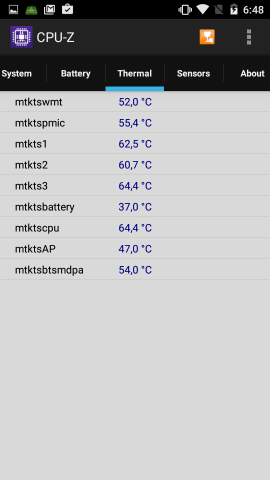Судя по датчикам вычислительный блок нагрелся до 64 градусов. Немного.