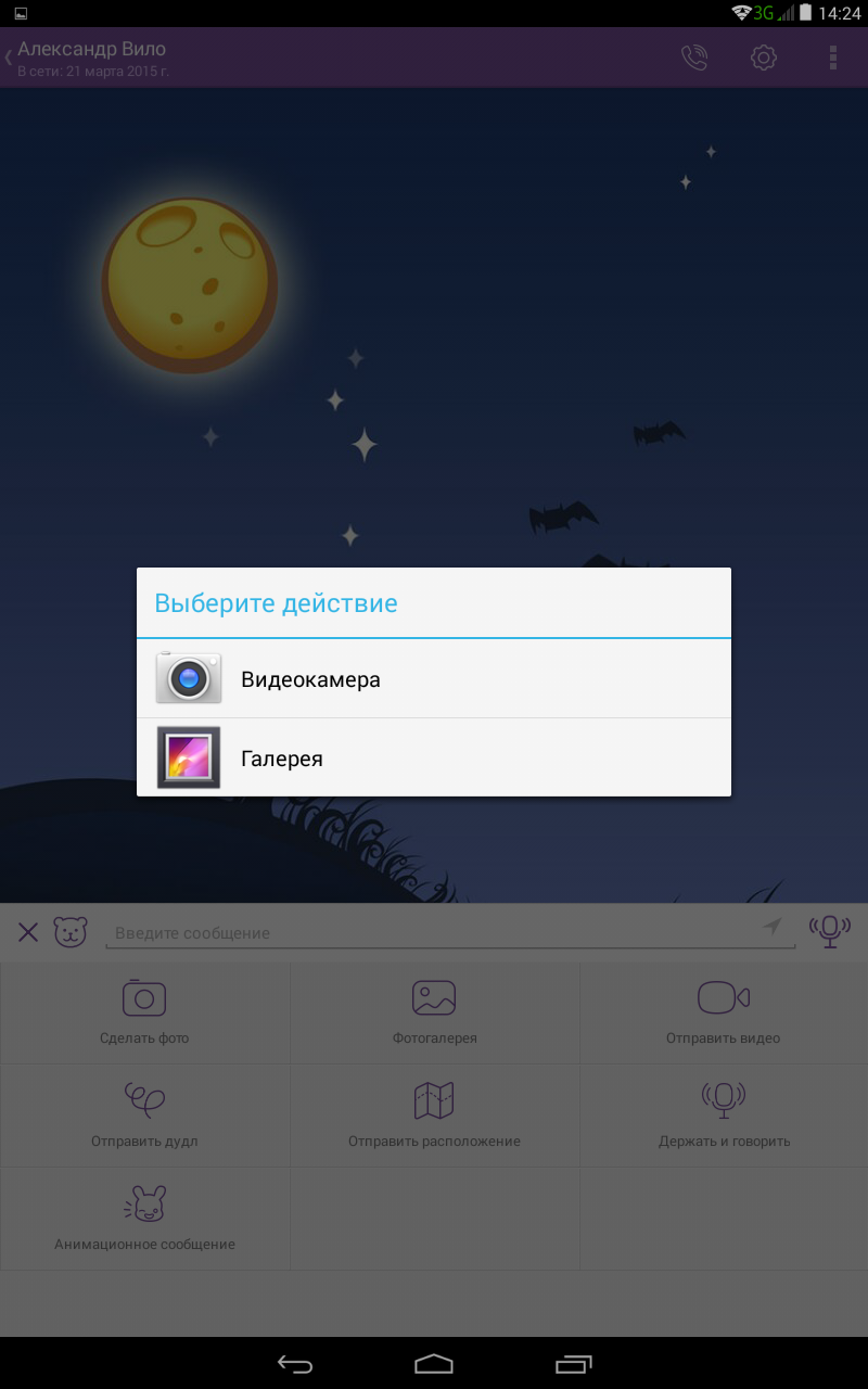 Для любителей украшательств есть возможность изменить фон чата по умолчанию. Можно выбрать из магазина Viber, из галереи или тут же сделать снимок.