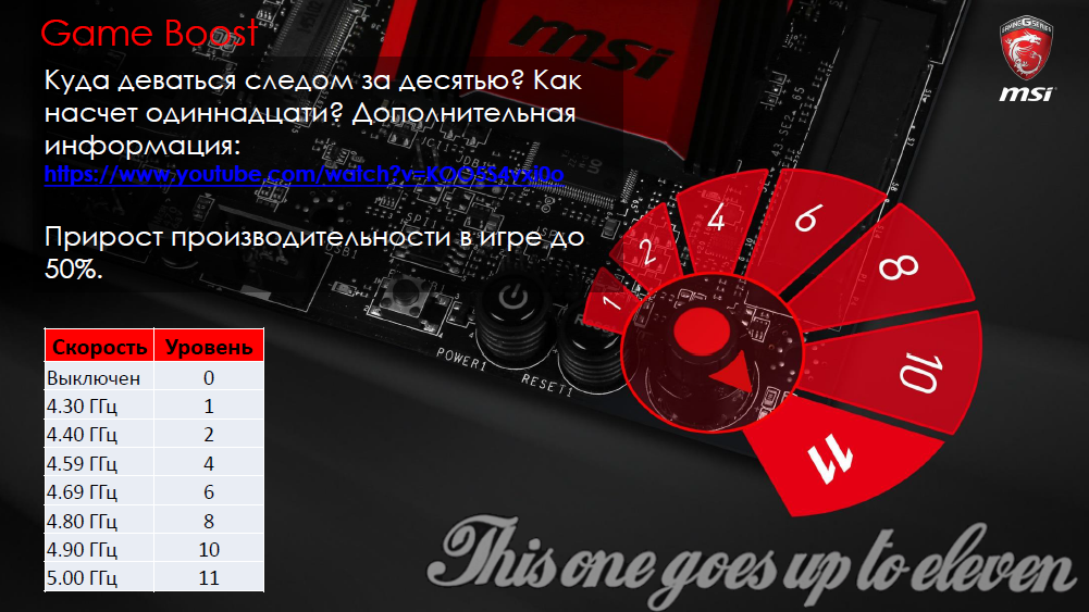 11 положений – это отсылка инженерами MSI к одному сериалу, где обыгрывается выражение «догнать до одиннадцати».