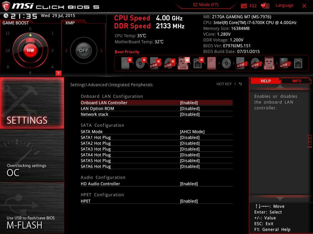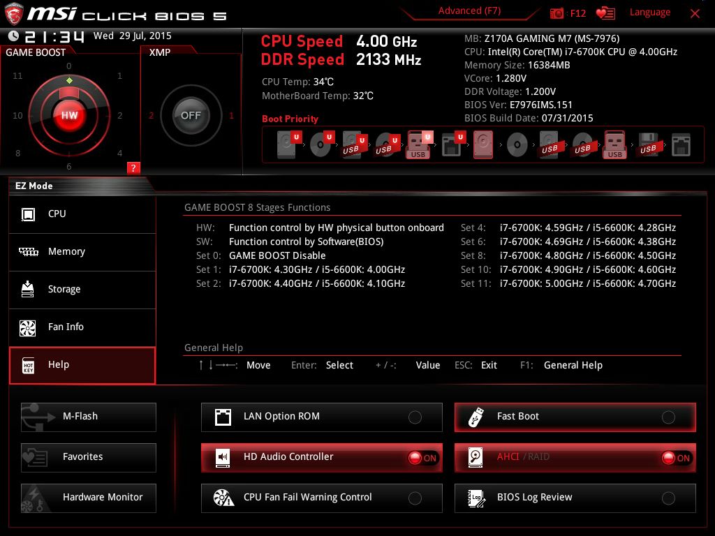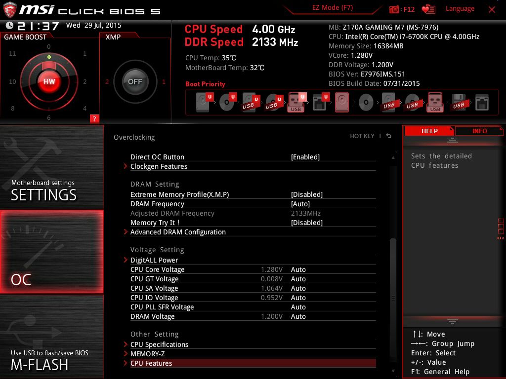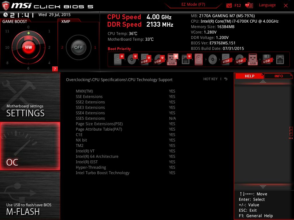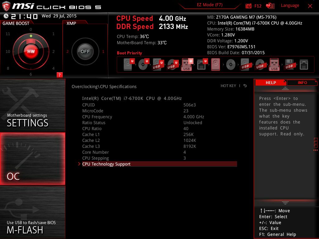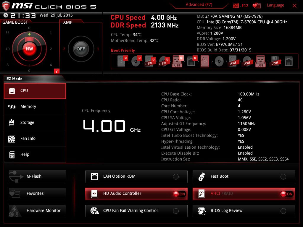 | Версия BIOS, с которой проводилось тестирование | E7976IMS.151 от 31 июля 2015 года |