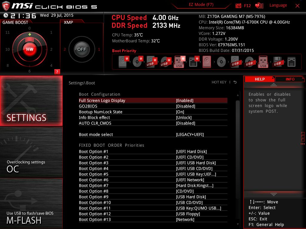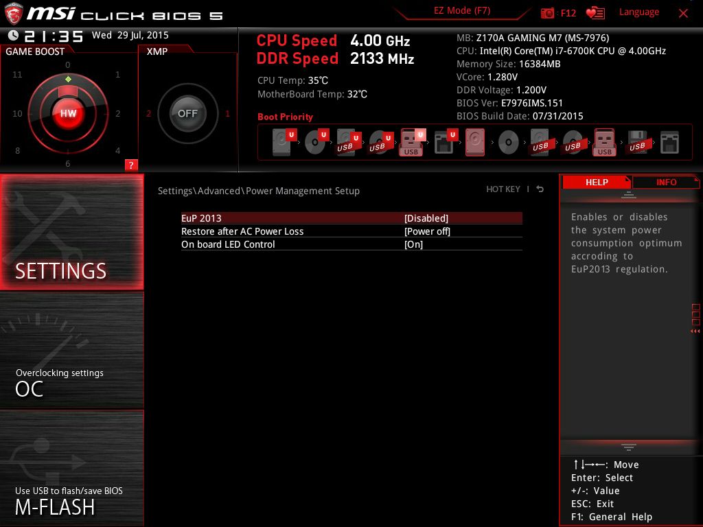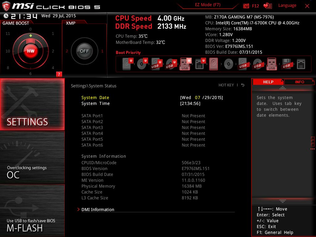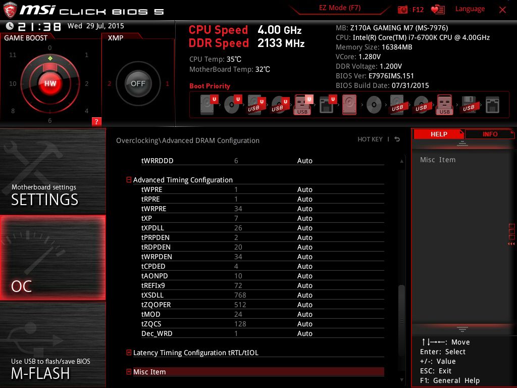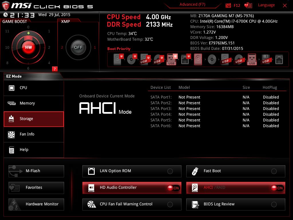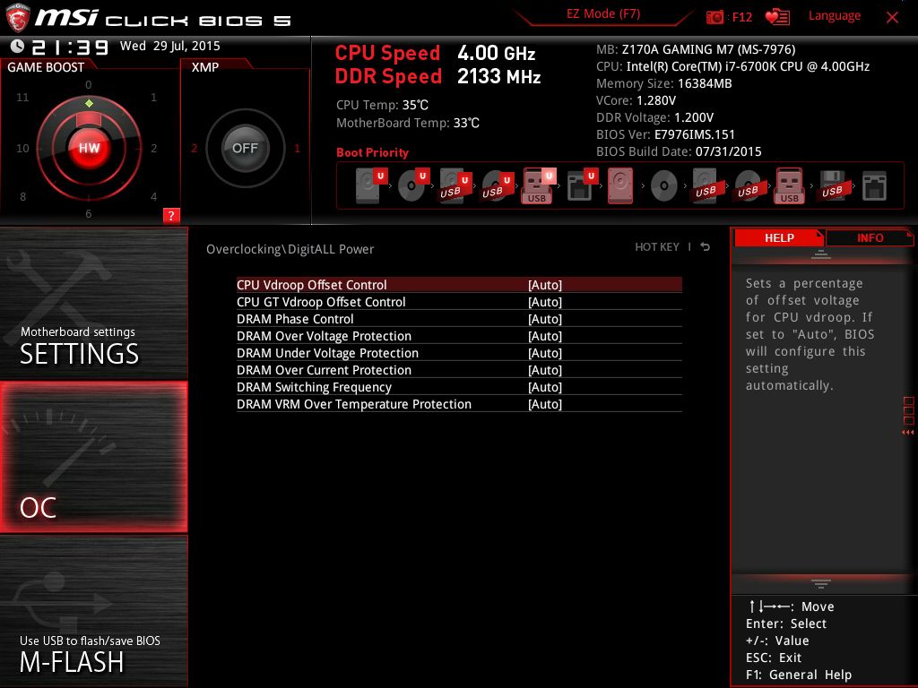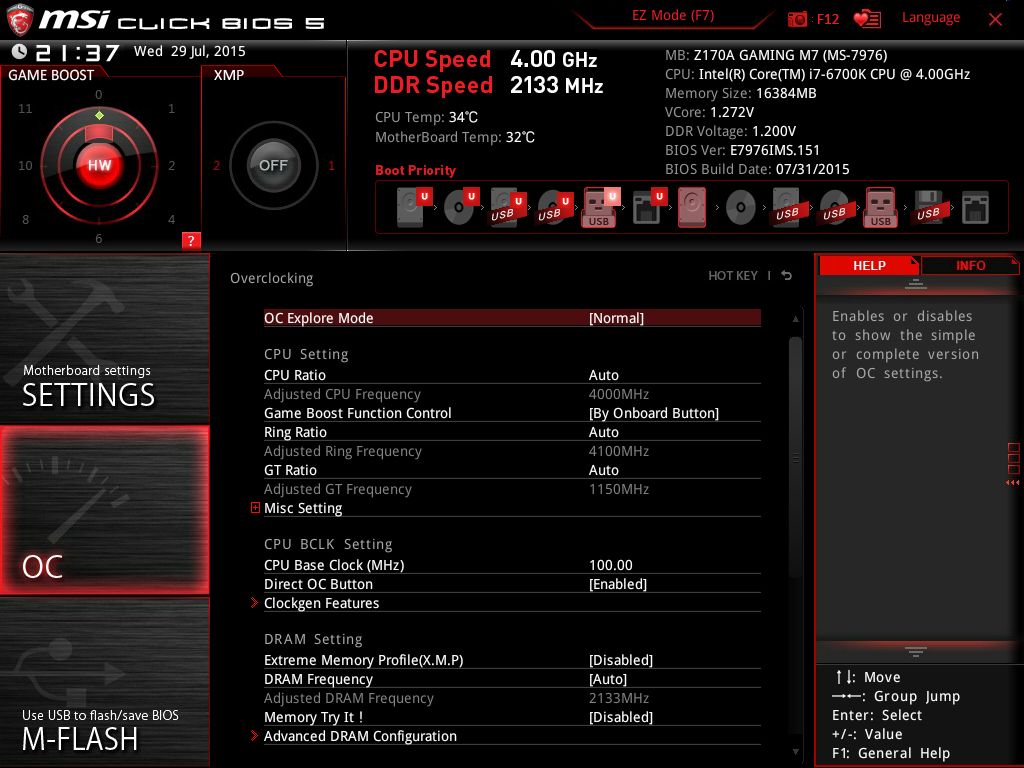 | Версия BIOS, с которой проводилось тестирование | E7976IMS.151 от 31 июля 2015 года |
