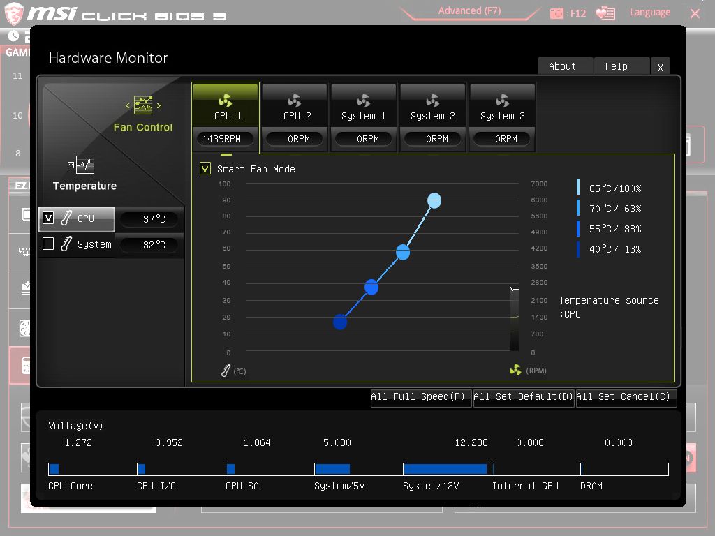 | Напряжение набора системной логики (чипсета) | Основное: щт 0.600 до 2.000 В с шагом 0.010 PCH CLK: от 0.600 до 2.000 В с шагом 0.010 |