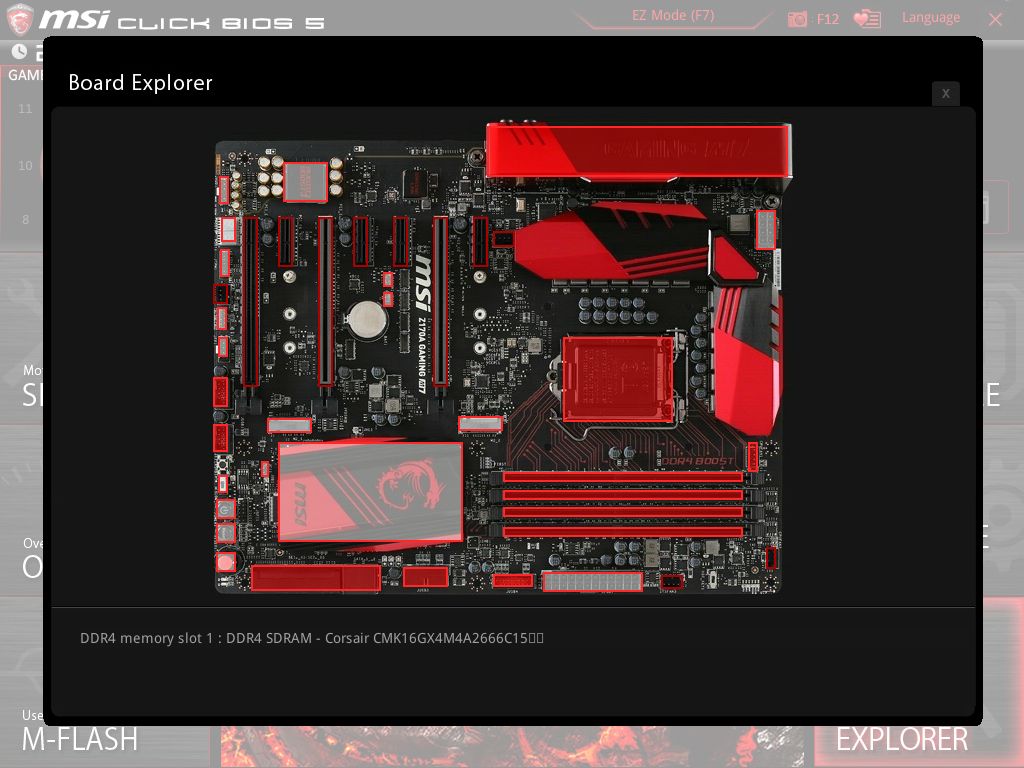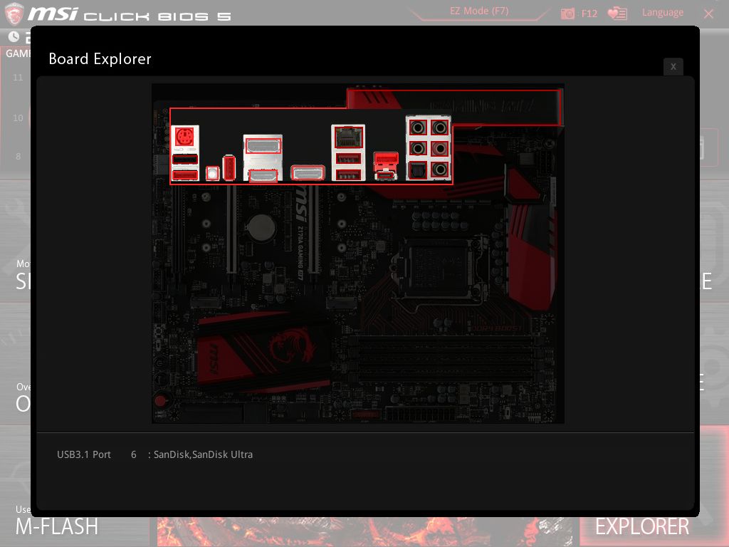 Прямо над кнопкой расположилась микросхема флеш-памяти BIOS - MXIC 25L12873F, объемом, кстати, не 64, а 128 Мбит, в то время как в описании материнской платы MSI Z170A Gaming M7 говорится об использовании 64 Мбит. Задел на будущее? Распаяли то, что есть? Дополнительный объем требуется для работы USB FlashBack+?
