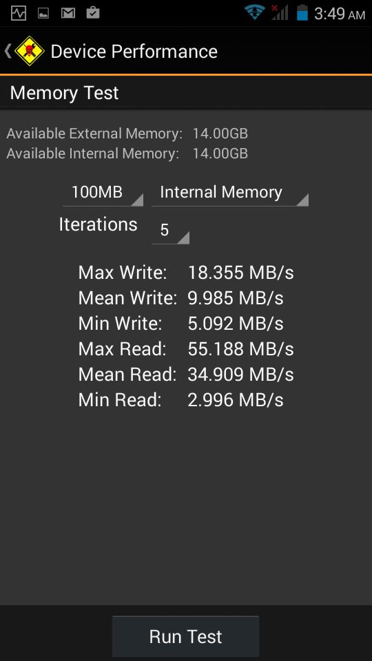 Как уже упоминалось, AnTuTu Tester не установился вовсе, а PC Mark неожиданно завершал свою работу. Можно было, конечно, повозиться и перепрошить смартфон, но ни желания, ни особого смысла в этом не было.