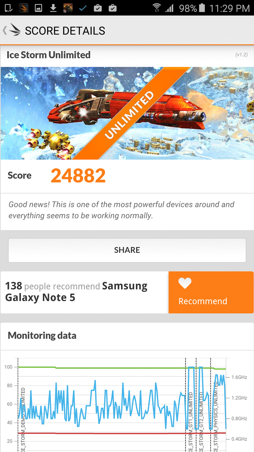 Неудивительно, что при повторном запуске AnTuTu «на горячую» Samsung Galaxy Note 5 растерял более 20 000 баллов.