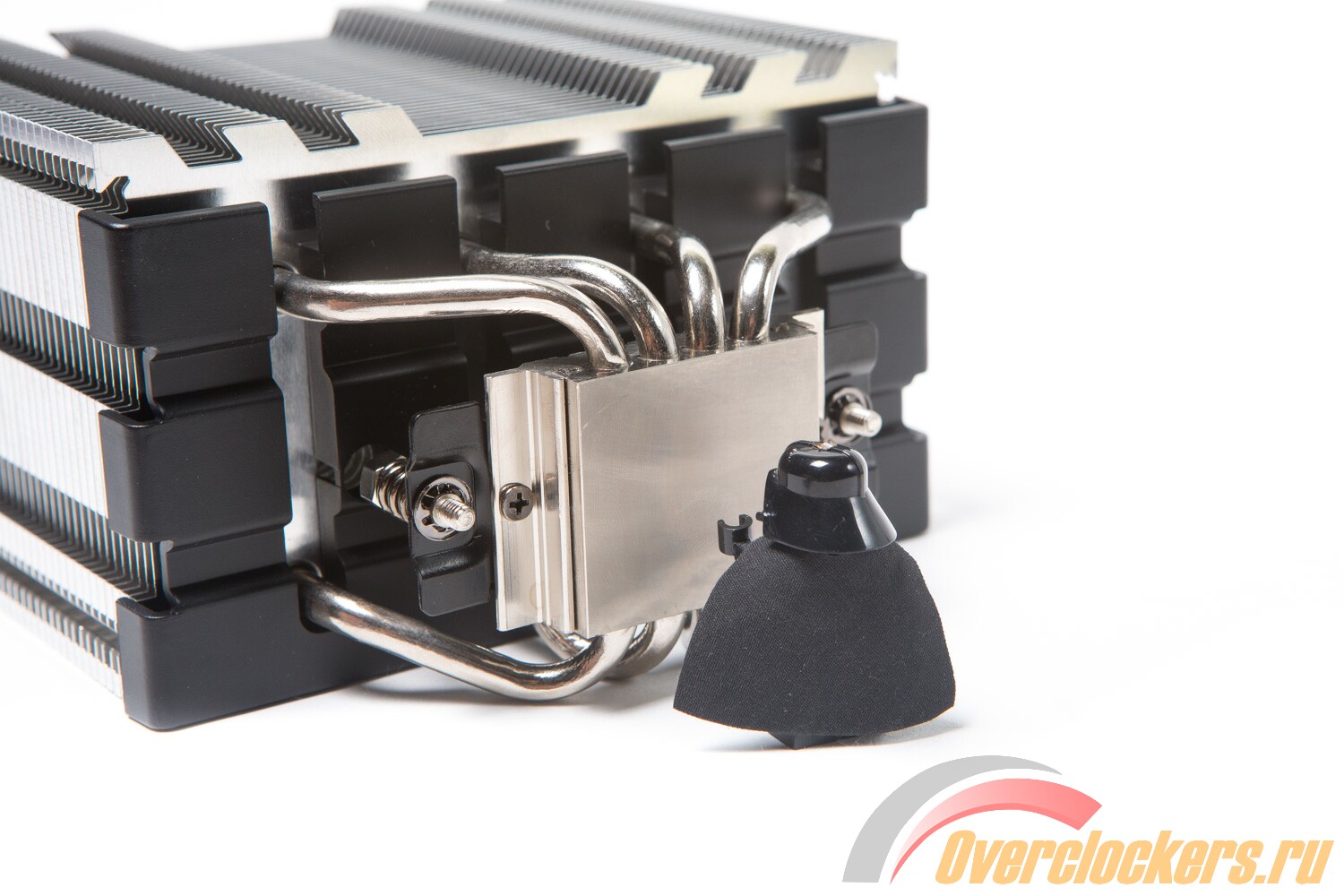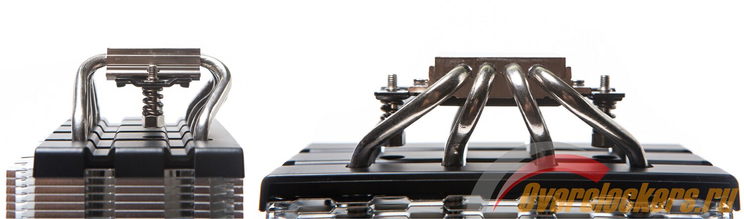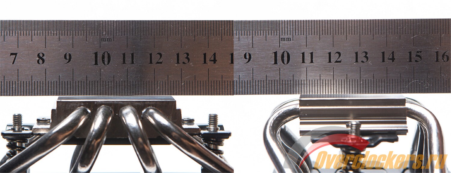 Для большей совместимости с модулями оперативной памяти теплотрубки с одной стороны получили небольшой изгиб вовнутрь подошвы. Из-за этого она немного смещена относительно центра радиатора в сторону.
