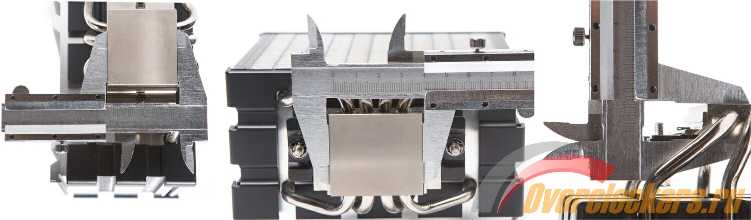 | Конструкция основания | Состоит из двух медных пластин, между которыми пропаяны тепловые трубки. ТТ находятся друг от друга на расстоянии ~2.5 мм | Состоит из двух медных пластин, между которыми пропаяны тепловые трубки. ТТ в основании находятся впритык друг к другу |