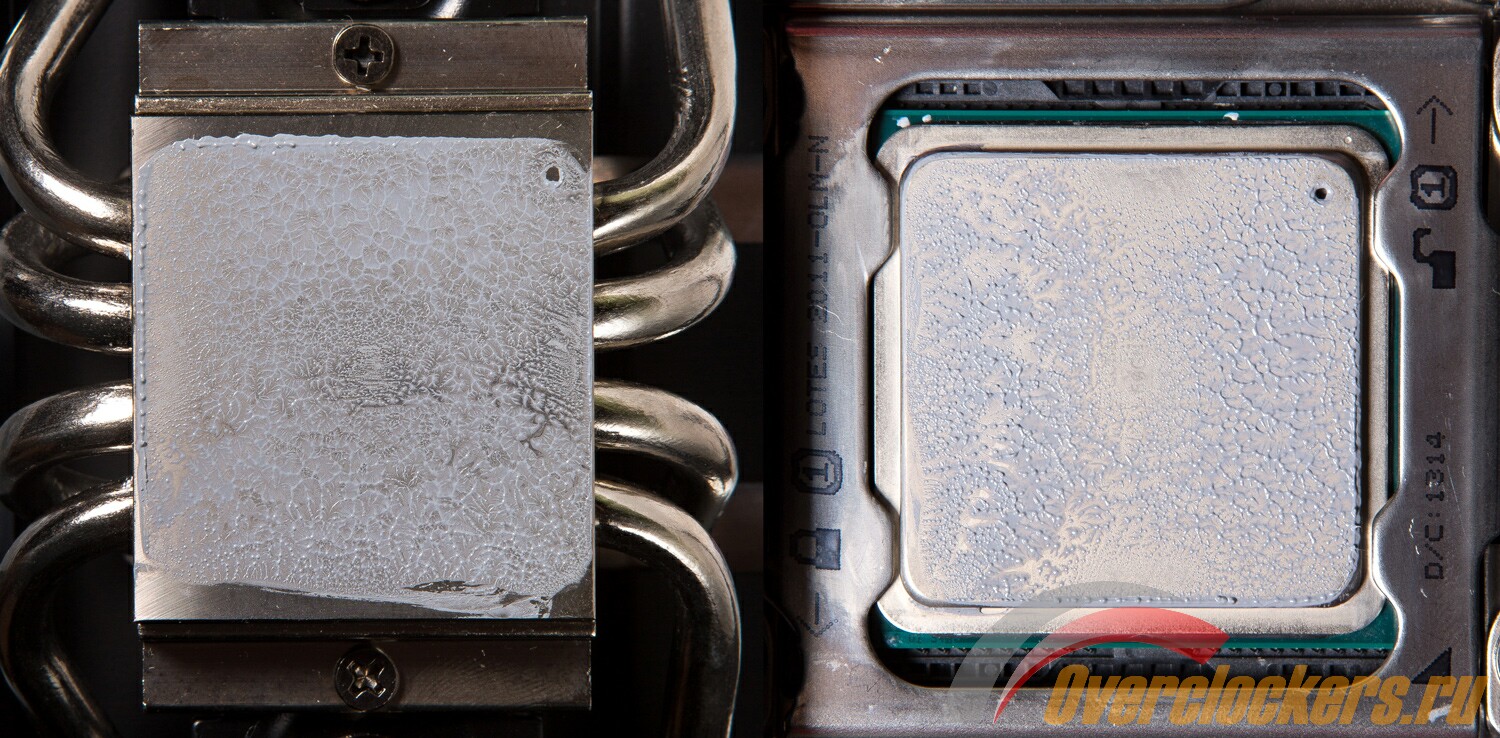 Из-за выпуклого основания тест отпечатка пройден крайне скверно. Как можно видеть, контакт с поверхностью процессора неполный. Это может негативно сказаться на показателях производительности.