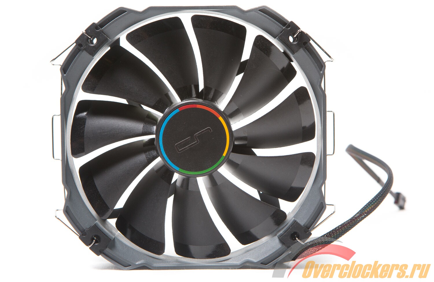 Внутри рамки находится крыльчатка с одиннадцатью широкими лопастями, на роторе присутствует наклейка с логотипом. Каждая лопасть получила два типа поверхности: матовую посередине и глянцевую у основания и по краям. Вентилятор оснащен функцией ШИМ-управления, его крыльчатка работает со скоростью 700-1300 RPM ± 10% при уровне шума 19-23 дБА. Уровень воздушного потока при максимальной скорости равен 76 CFM, а статическое давление находится на уровне 1.44 мм H2О.