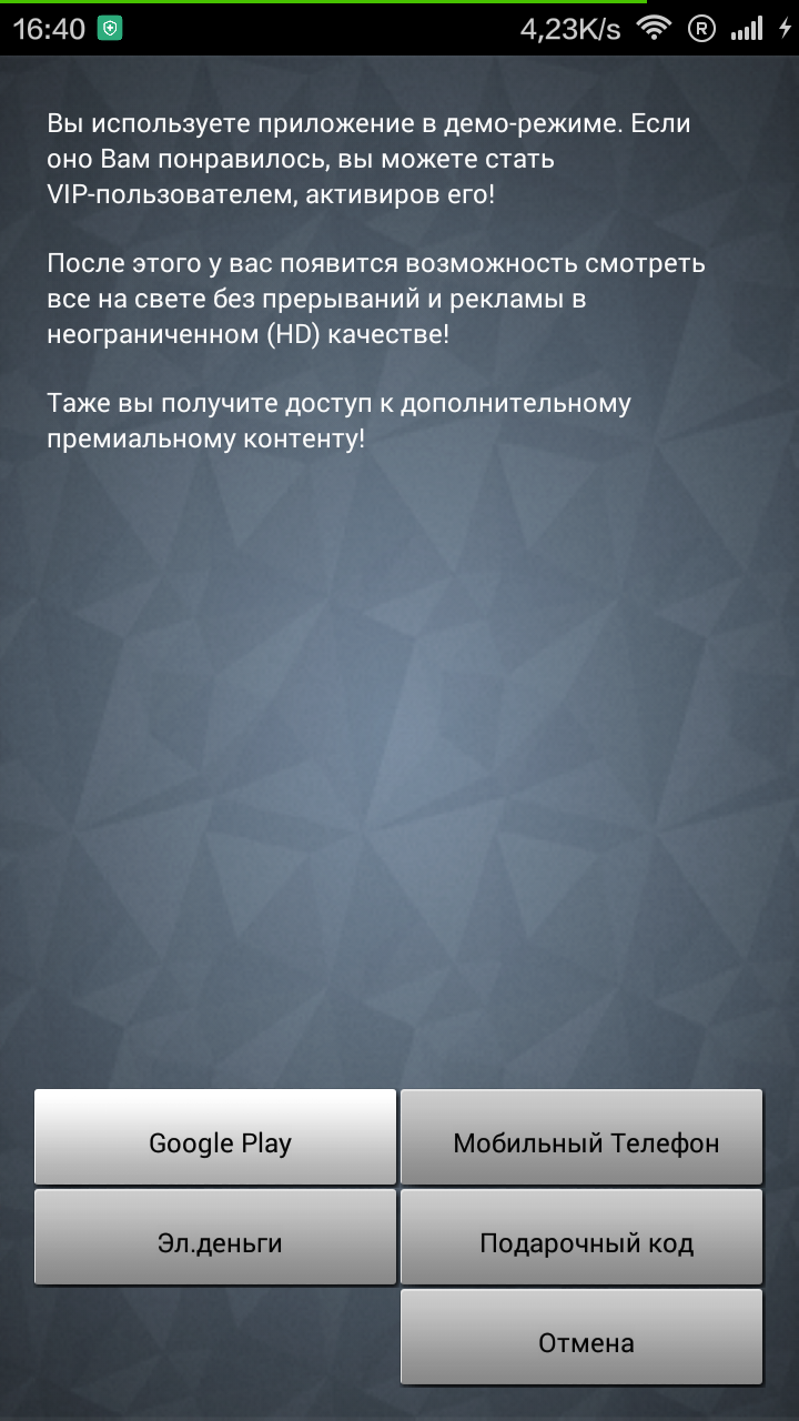 Казалось бы, «Бизон ТВ» – бесплатная программа для просмотра телевизионных каналов, есть телепрограмма, база фильмов и многое другое. Вот он – идеал, но нет… Через несколько дней использования мы узнаем, что приложение работало в демо-режиме, и, естественно, для продолжения использования необходимо активировать подписку.