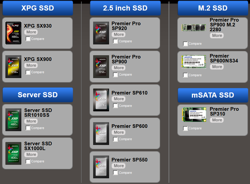 По идее, XPG SX930 должен был заменить XPG SX900, однако на момент написания данных строк, оба этих семейства сосуществовали рядом на сайте ADATA, как актуальные. SP920, кстати, тоже.