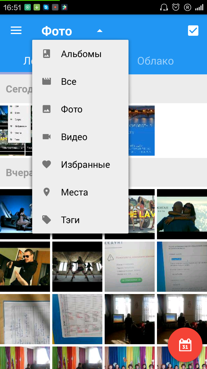 Вернемся к просмотру фото, открыв любой альбом. Естественно, мы сразу же видим наши фотографии, располагаются они в неких ячейках, а сортируются по датам. При необходимости можно открыть календарь галереи, и просмотреть фото за любой период.