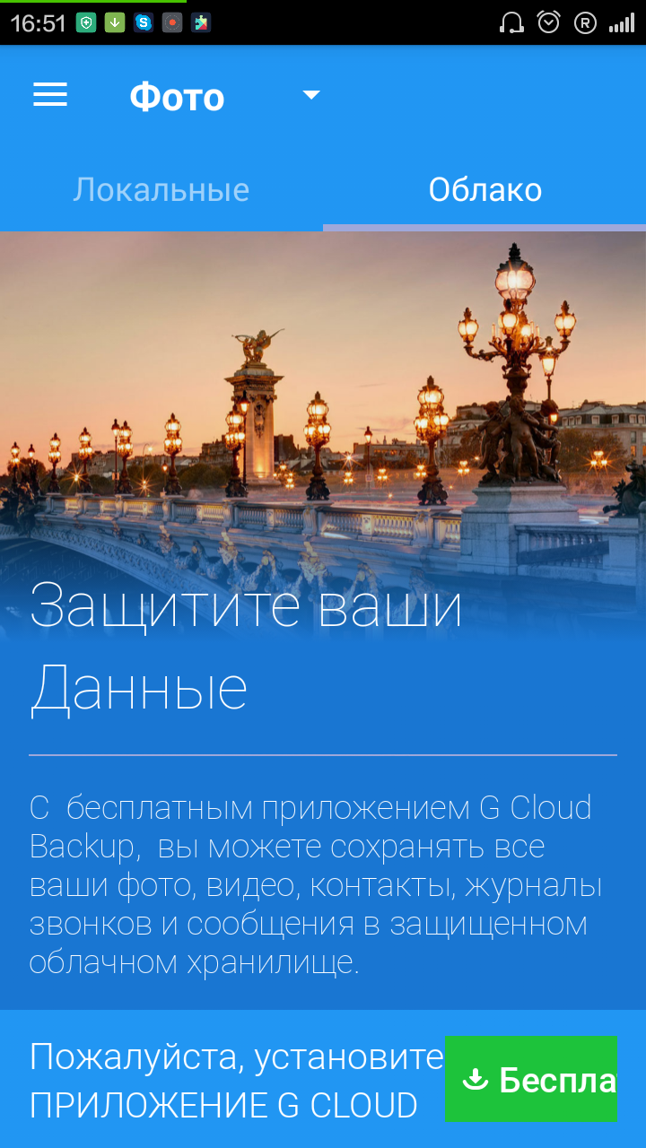 К чему такие сложности? Все дело в том, что основной компонент Cloud Gallery – это приложение G Cloud Backup. Данная галерея является всего лишь маркетинговым ходом, чтобы прорекламировать вышеуказанную программу.