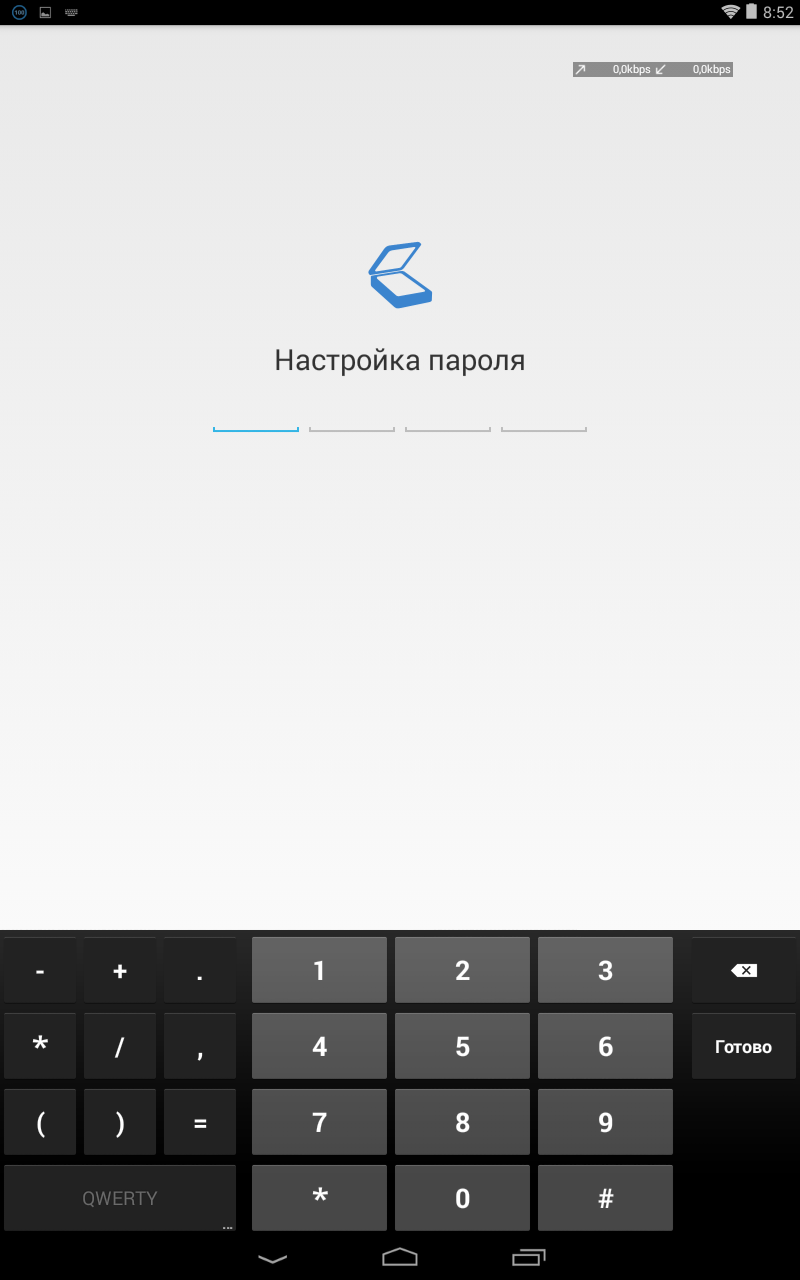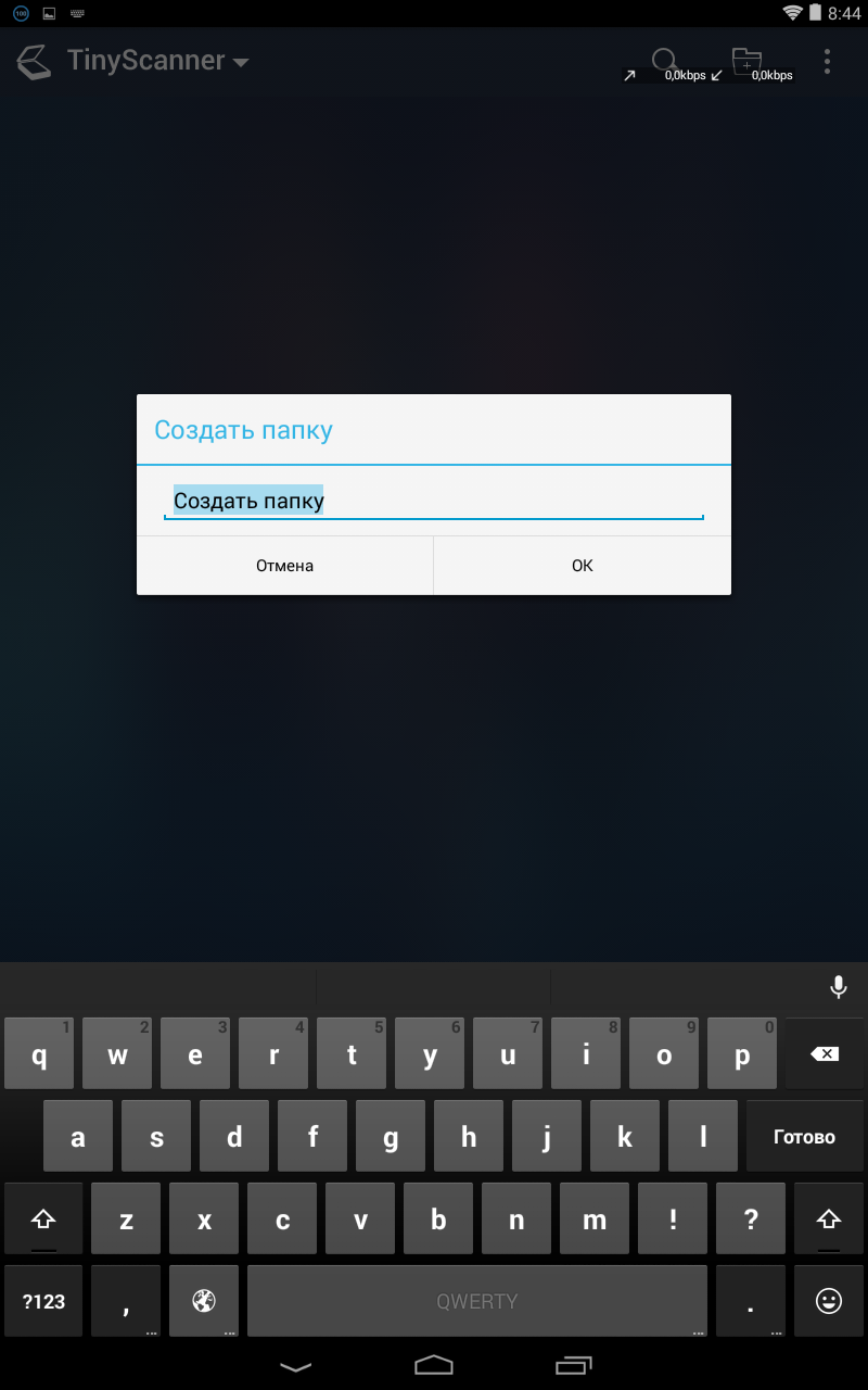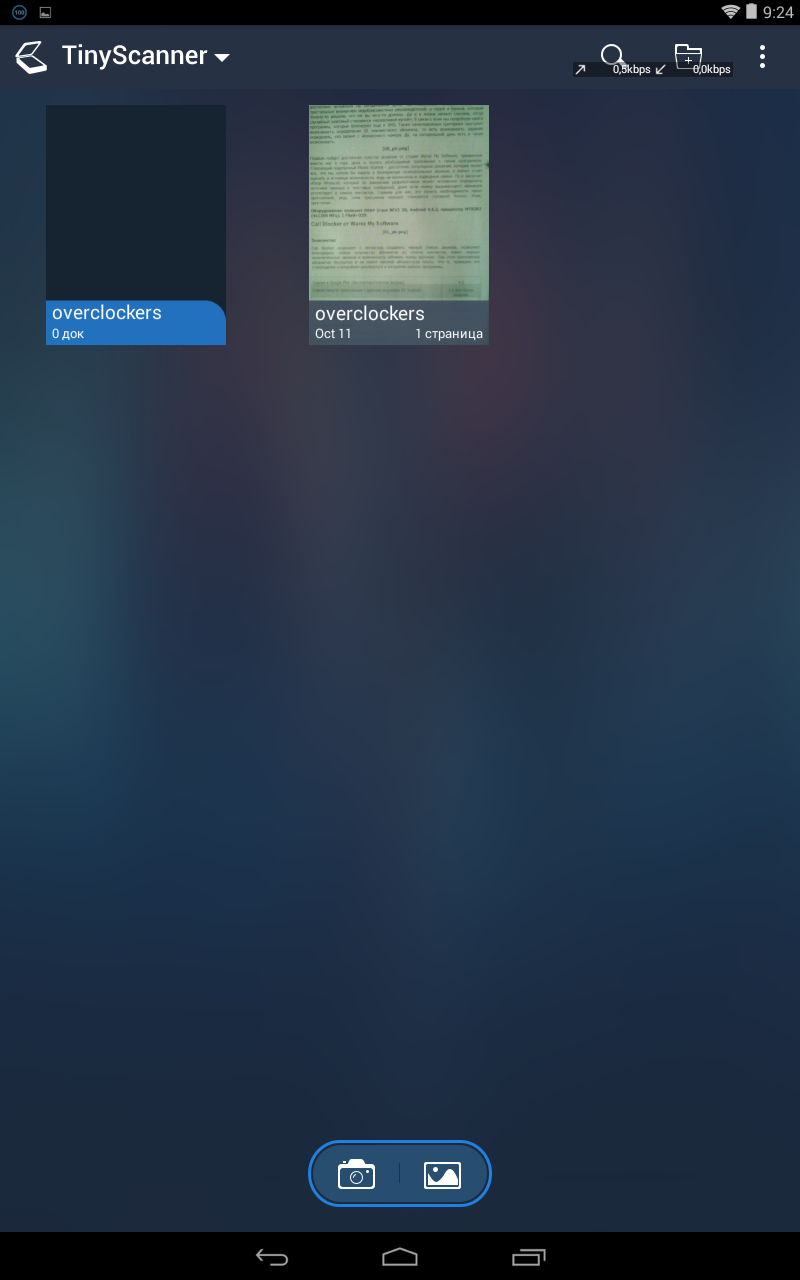 Создаем папку и вперед. Ориентация экрана меняется на ландшафтное представление, а само сканирование происходит через встроенную утилиту для камеры.