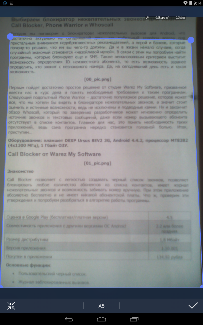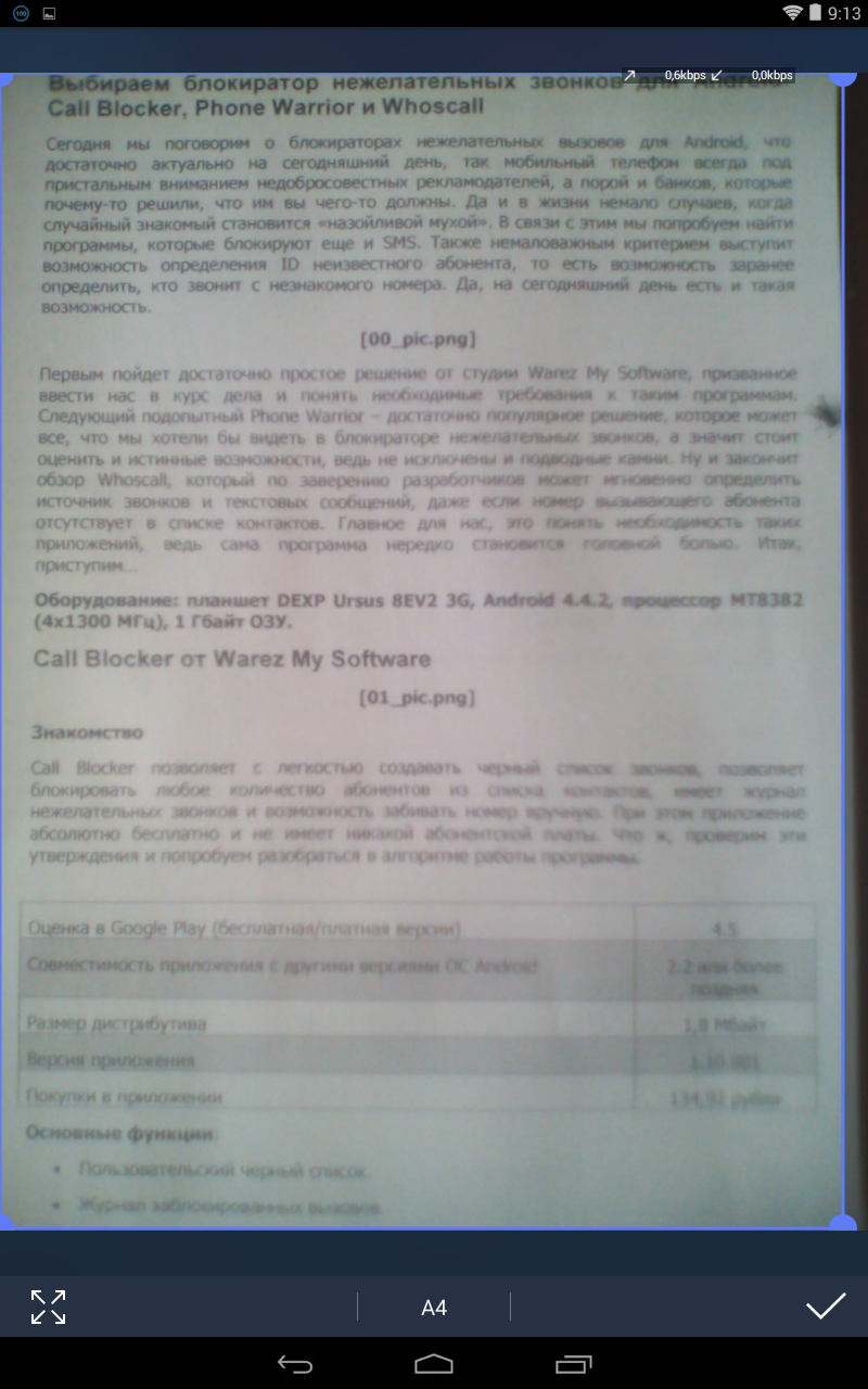 Первый недостаток – стоит прикоснуться к любой области экрана, и приложение сразу делает снимок. По заветным «трем точкам» мы попали с третьего раза, а ведь рядом основная кнопка – сканирование.