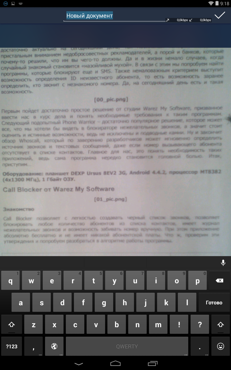 Отредактировали? Жмем галку и попадаем на экран переименования документа. Имя можно вбить абсолютно любое. Закончили? Далее можно добавить страницу к документу или подгрузить ее из памяти.