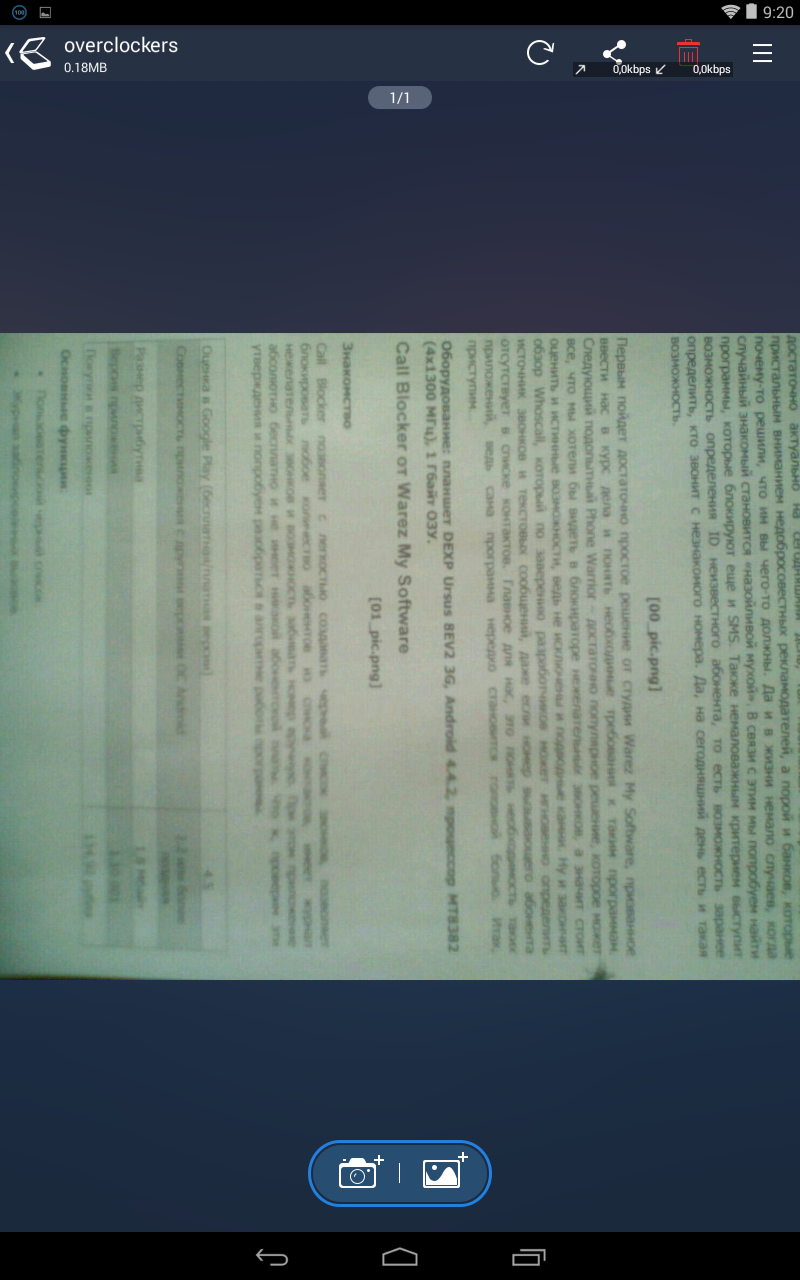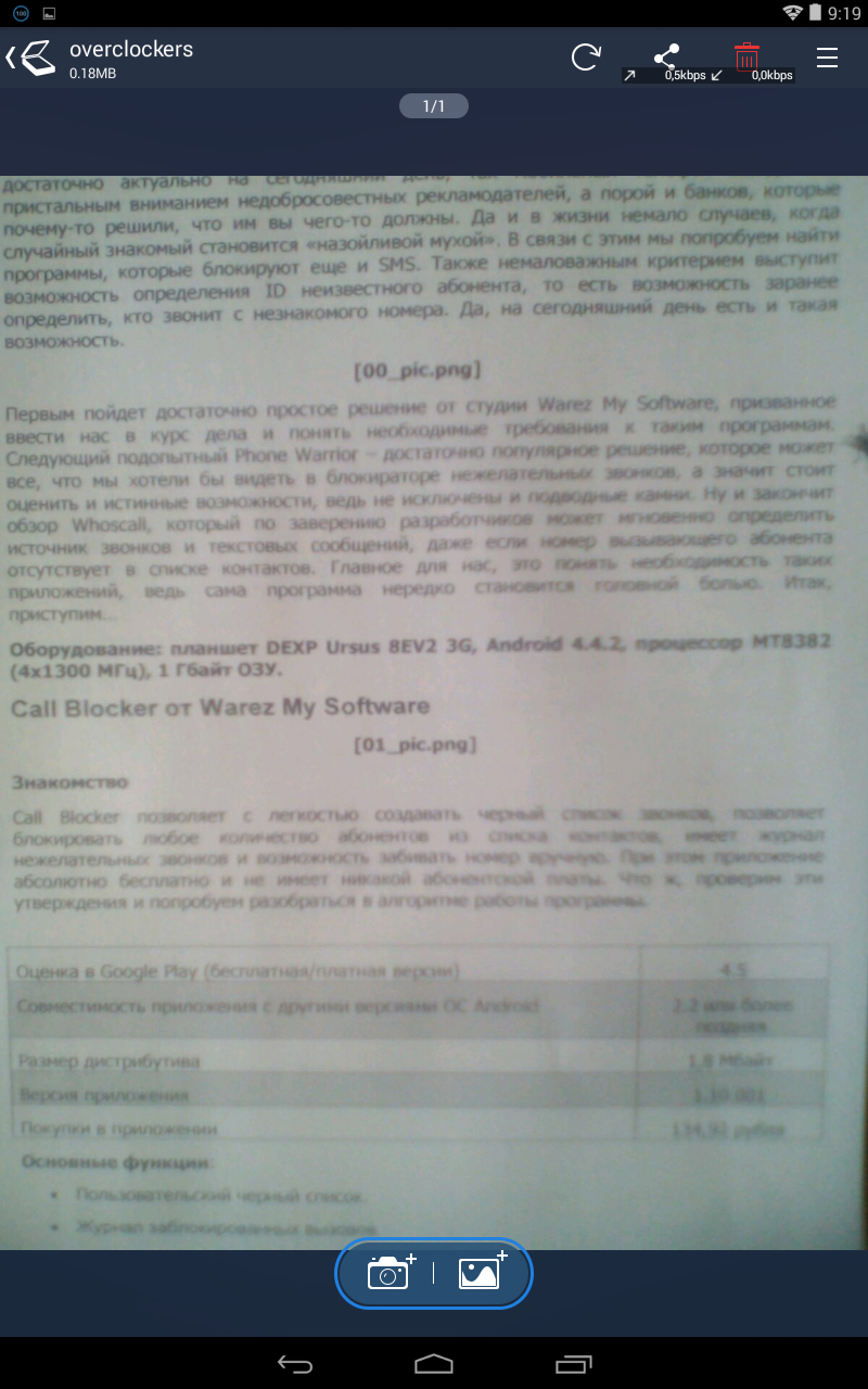 Что касается самого сканирования, то можно использовать заранее сделанный снимок или сделать его самостоятельно прямо из программы. При этом применяется стандартное приложение камеры, никаких плюшек, как, например, автоопределения границ документа, нет.