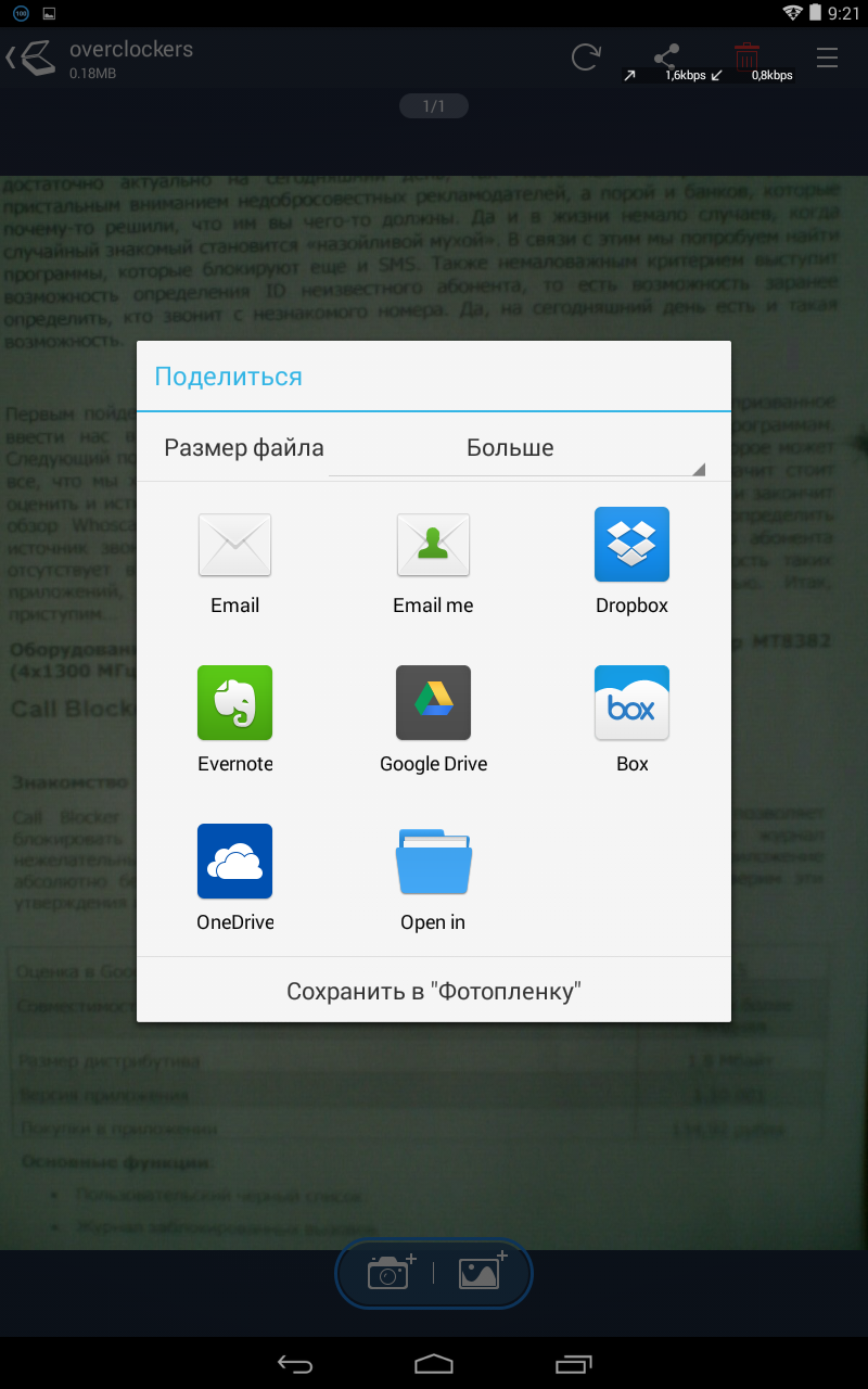 Кстати, этим делом также можно поделиться или сохранить как текстовый файл на SD-карту.