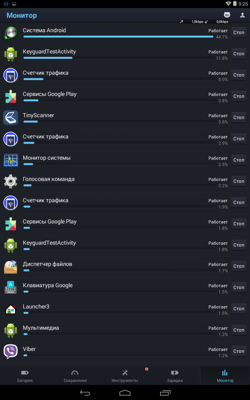 При этом расход аккумулятора за 25-минутное тестирование составил аж 45.7% (здесь и далее использовался DU Battery Meter), что просто кошмар для 4 000 мАч. Что ж, глянем трафик – вполне приличные для такого объема документов 2.4 Мбайт.