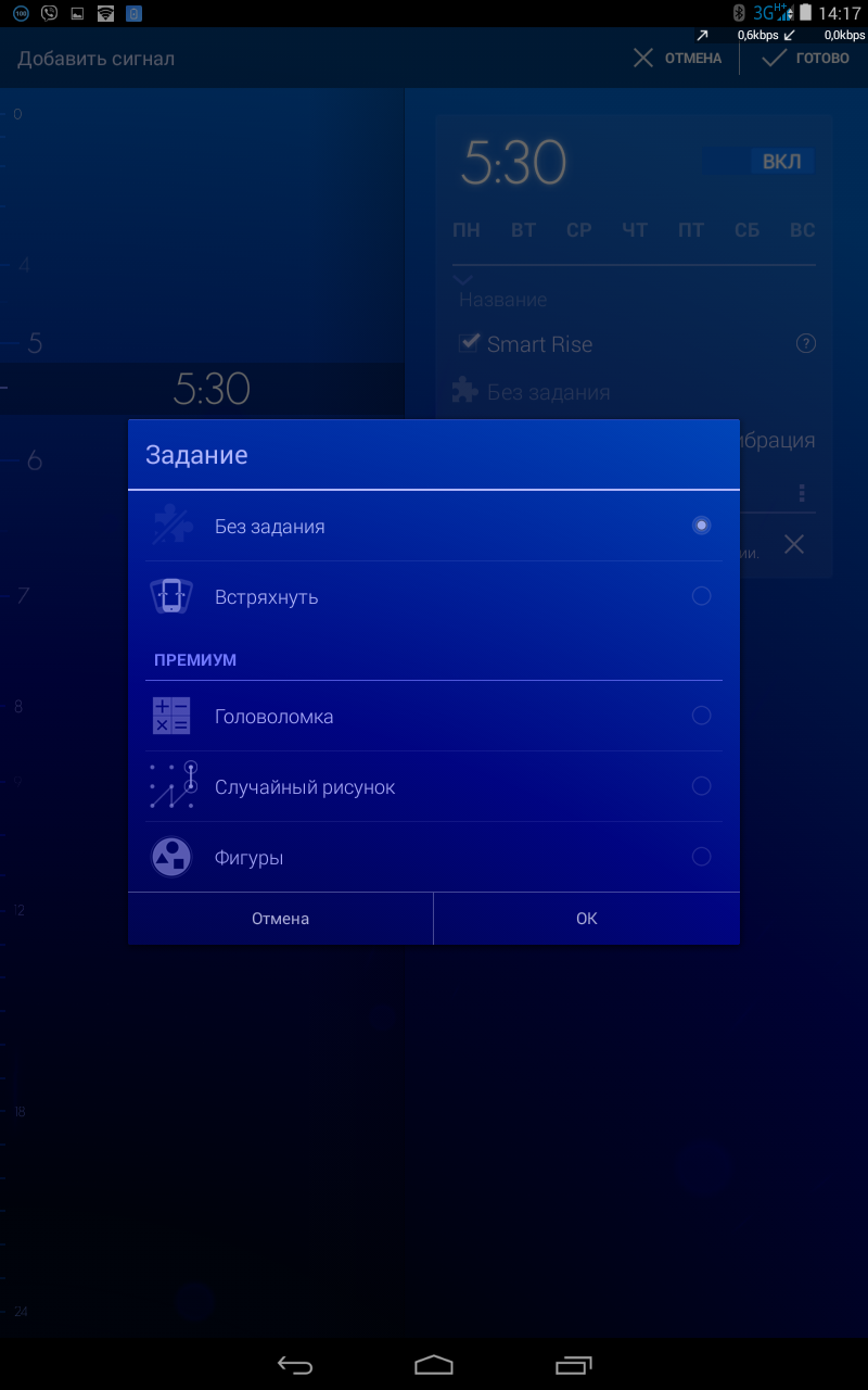 А для того, чтобы проснуться, можно сделать определенное задание, например, встряхнуть устройство, решить головоломку, начертать случайный рисунок и выбрать фигуры. Ничего не скажешь, обошел-таки Timely многофункциональный Xtreme.