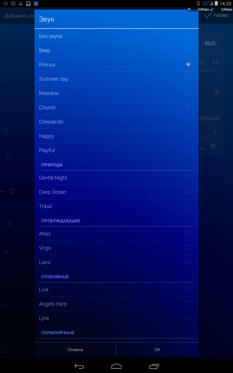 Мелодий великое множество, и они разделены на категории, например, есть гармоничные и пробуждающие. Не обошлось и без вибрации. Из особенностей – возможность синхронизации будильника с другими устройствами через фирменное облако, благодаря чему достаточно установить Timely на другой смартфон и управлять им удаленно.