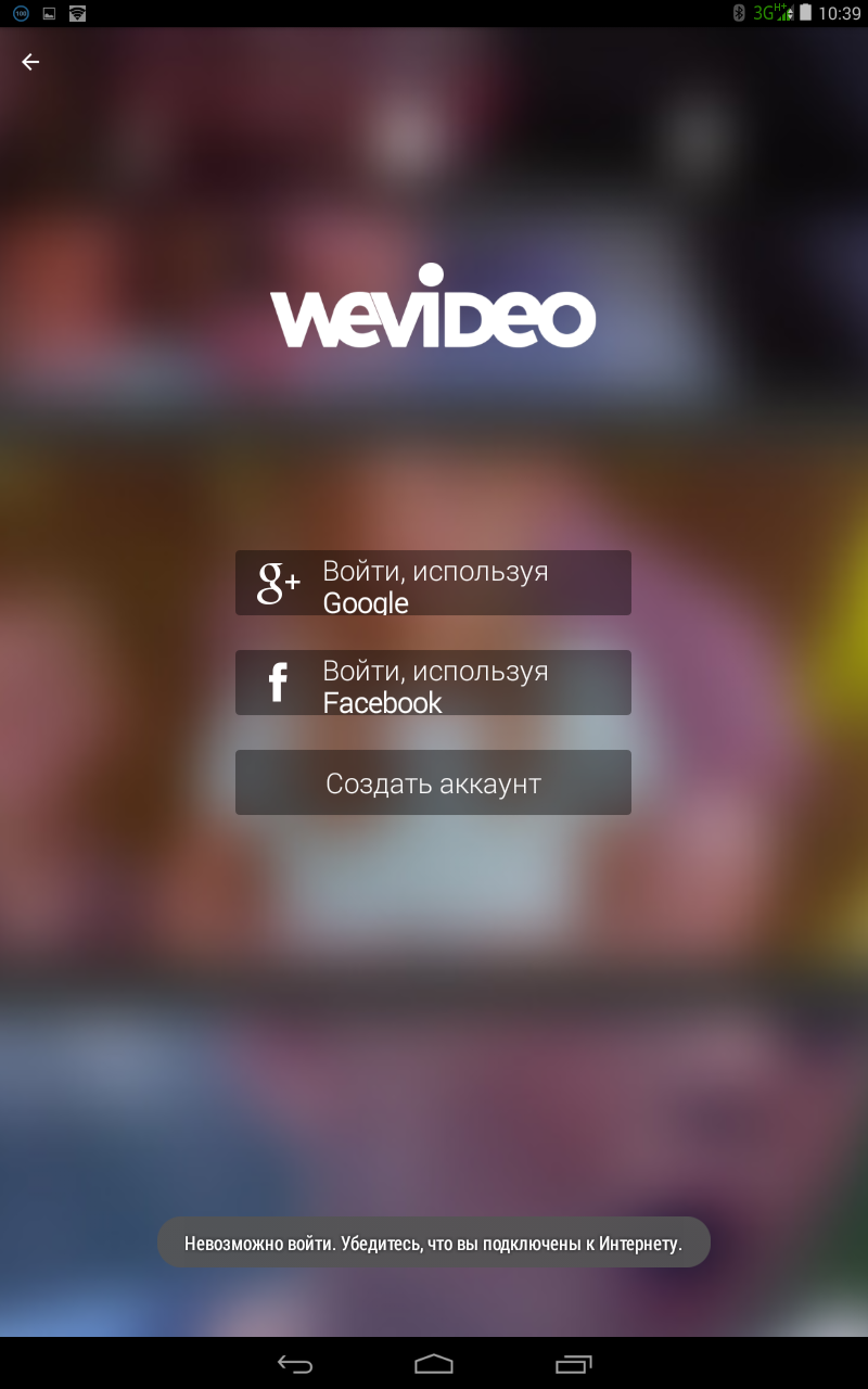 При первом открытии WeVideo мне предлагают зарегистрироваться в сервисе или войти как гость. Это и неудивительно, ведь приложение позиционируется в качестве облачного видеоредактора. Для полноты картины, пожалуй, зарегюсь.